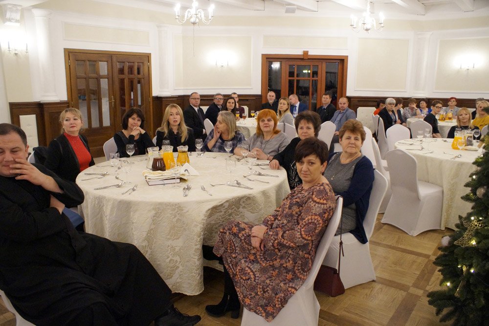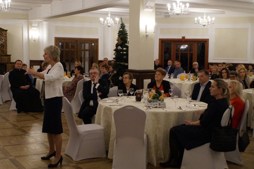 W środowy wieczór – 19 grudnia – Dwór Modrzewiowy Hotelu Cristal Park zapełnił się nauczycielami i pracownikami naszej szkoły. A to za sprawą organizowanego tu, od kilku lat, spotkania opłatkowego. Podczas tego wyjątkowego wieczoru zebranym przez cały czas towarzyszyła muzyka. Mieli oni okazję wysłuchać niezwykle profesjonalnego występu szkolnego chóru, który pod batutą pani Iwony Kasińskiej stał się przyczynkiem do niezwykłej atmosfery tego dnia.