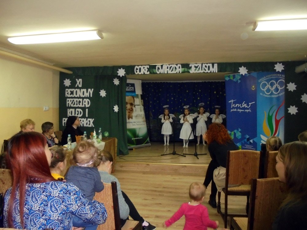 W dniu 31 stycznia 2019r. w naszej szkole odbył się XI Rejonowy Przegląd Kolęd i Pastorałek „Gore gwiazda Jezusowi” Impreza miała na celu rozbudzenie śpiewu kolędowego, pogłębianie wiedzy o tradycjach i zwyczajach obecnych w naszej kulturze narodowej i chrześcijańskiej, jak również uwrażliwienie dzieci na piękno tych tradycji.
