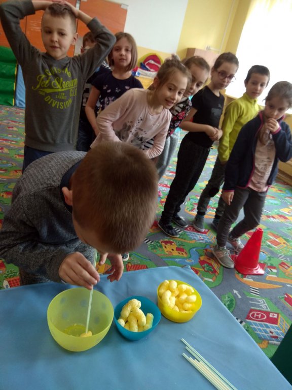 Jak ćwiczyć współpracę w grupie i pozytywną rywalizację? Jak rozwijać wytrwałość i cierpliwość? Jak usprawnić koordynację wzrokowo – ruchową, orientację w przestrzeni i spostrzegawczość? Jak zrobić to wszystko w ciekawy i atrakcyjny dla dzieci sposób? Na te pytania starały się odpowiedzieć pani psycholog Kinga Słowik i pani logopeda Monika Dziecina, które zorganizowały w naszej szkole „Zawody na wesoło”. Uczniowie klas I – III brali udział w ciekawych i zabawnych konkurencjach, które służyły nie tylko dobrej zabawie, ale także nauce.