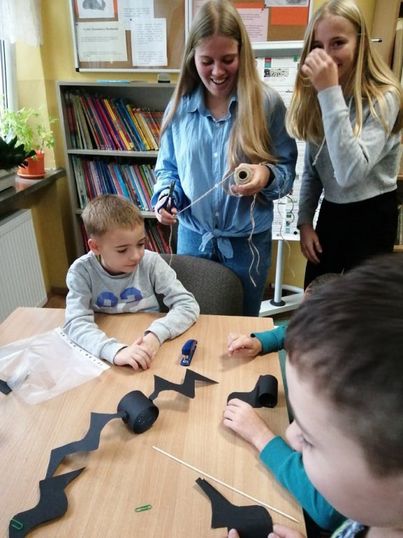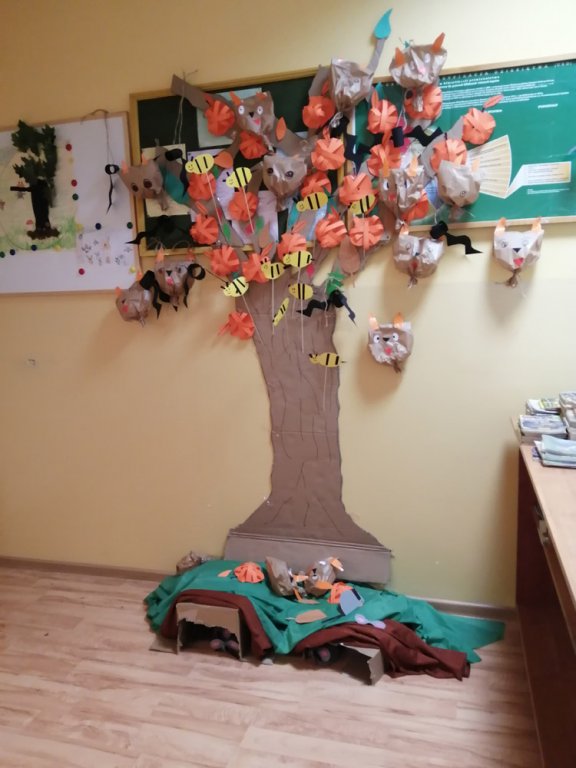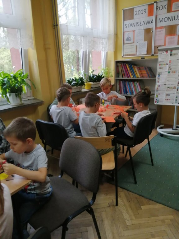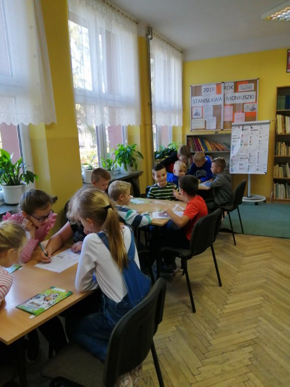 Klasy 1 i 2 wykonywały z kolorowego papieru postacie występujące w opowiadaniach, a klasy 3 rozwiązywały krzyżówki na znajomości treści wysłuchanych opowiadań. Najbardziej interesujące prace zostały zaprezentowane na wystawie w bibliotece szkolnej. Dziękujemy za wspólną zabawę.