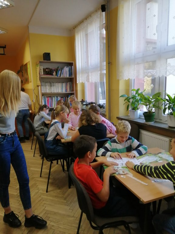 Z tej okazji 27 i 30. 09. bibliotekę szkolną odwiedzili uczniowie z klas młodszych, którzy słuchali czytanych przez starsze koleżanki z klasy 8a Amelię Peplinskią, Annę Rapacz i Nadię Srokę opowiadań z książki „Gang słodziaków” Renaty Piątkowskiej.