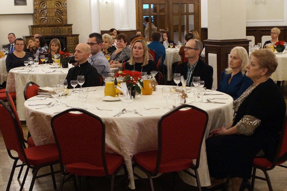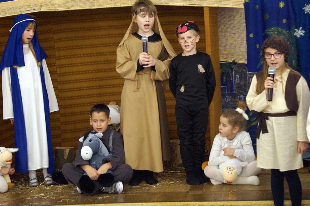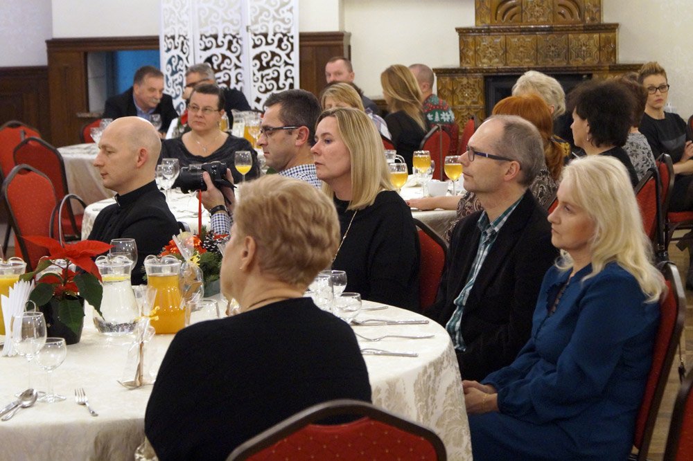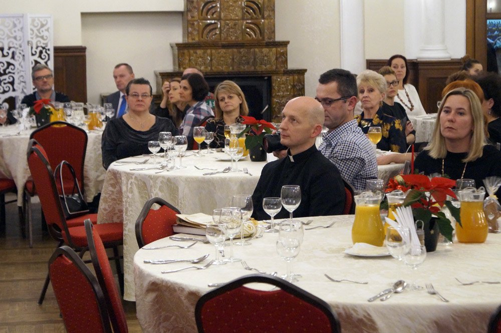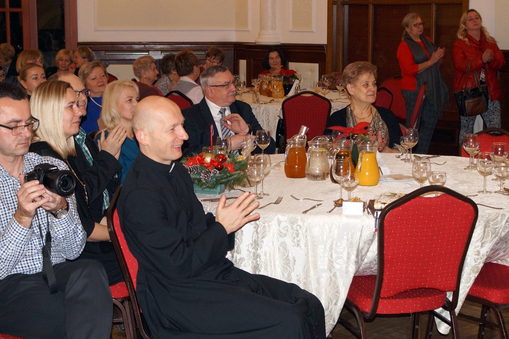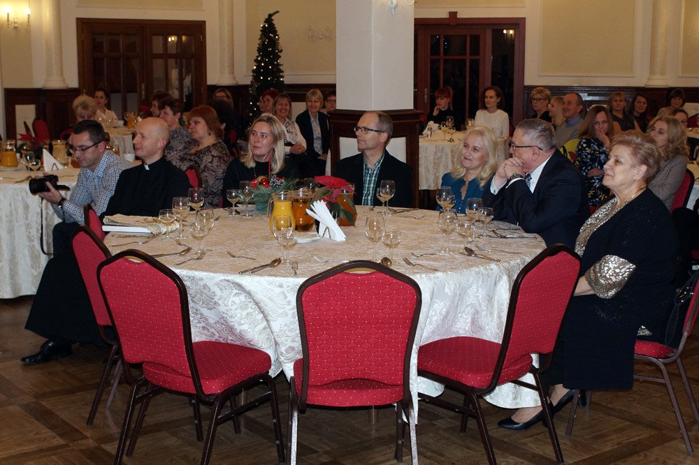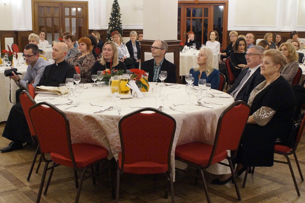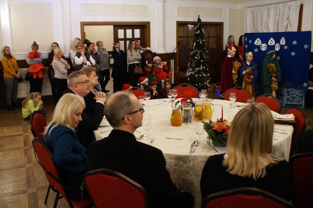 19 grudnia grono pedagogiczne, pracownicy naszej szkoły oraz jej przyjaciele spotkali się na wieczerzy wigilijnej w Dworze Modrzewiowym Hotelu Cristal Park. Uroczystość uświetniły jasełka, które przygotowała klasa 3 a, pod czujnym okiem swojej wychowawczyni p.Marty Kamykowskiej. W bożonarodzeniowy nastrój wprowadziły gości także anglojęzyczne kolędy. Nad występem uczniów z klasy 2a i 2 b czuwały panie anglistki: Katarzyna Szczepanik i Katarzyna Solak.