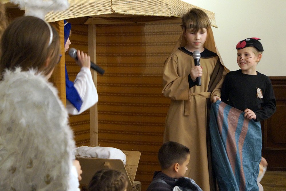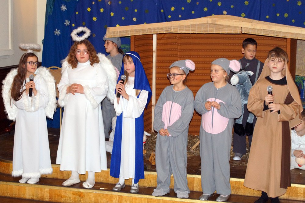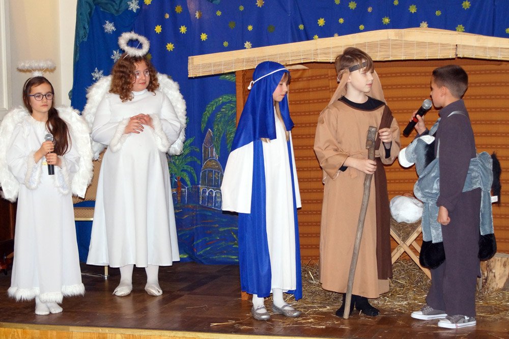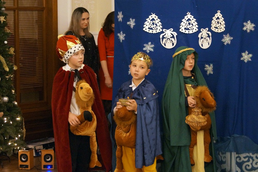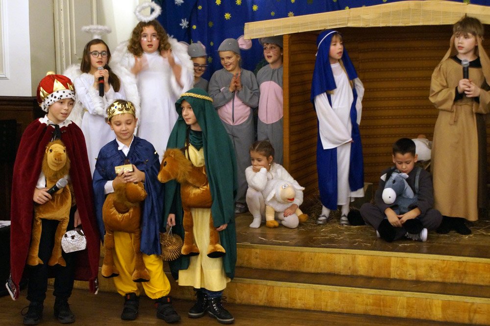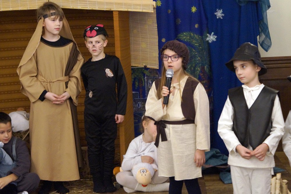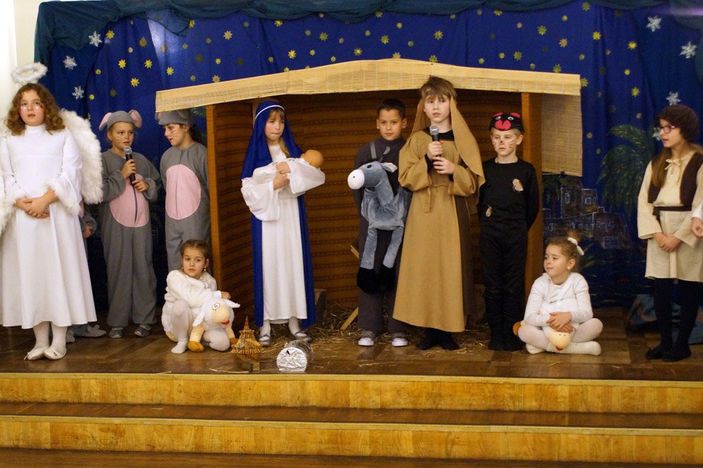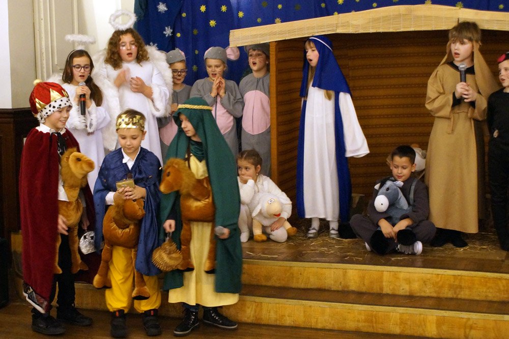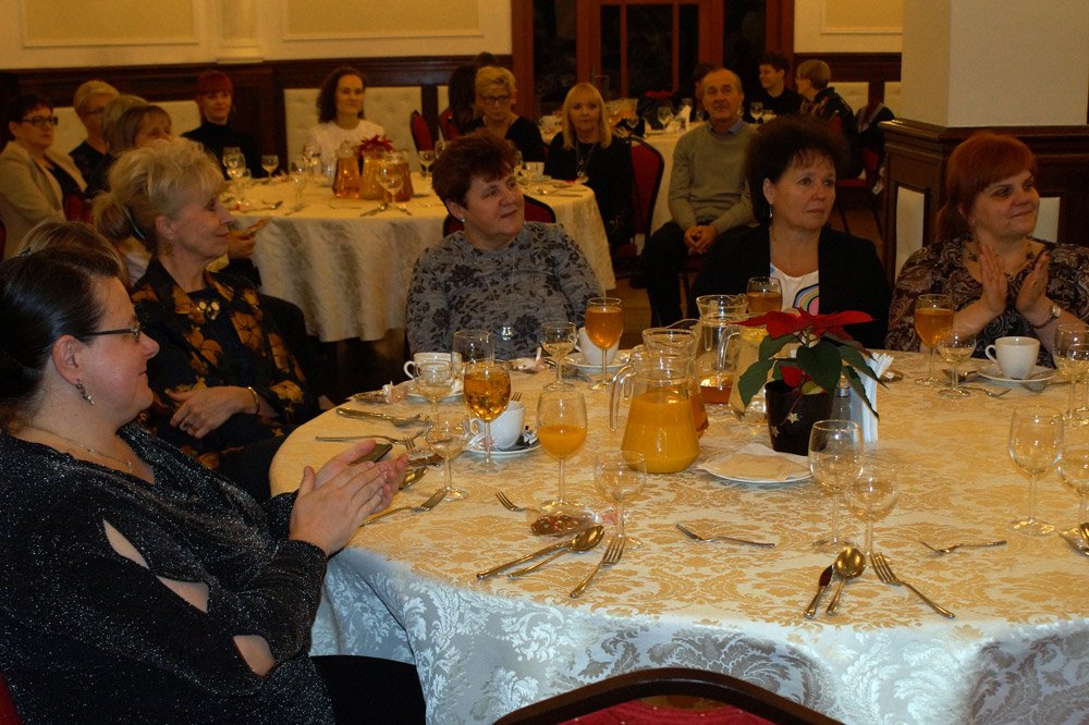 19 grudnia grono pedagogiczne, pracownicy naszej szkoły oraz jej przyjaciele spotkali się na wieczerzy wigilijnej w Dworze Modrzewiowym Hotelu Cristal Park. Uroczystość uświetniły jasełka, które przygotowała klasa 3 a, pod czujnym okiem swojej wychowawczyni p.Marty Kamykowskiej. W bożonarodzeniowy nastrój wprowadziły gości także anglojęzyczne kolędy. Nad występem uczniów z klasy 2a i 2 b czuwały panie anglistki: Katarzyna Szczepanik i Katarzyna Solak.