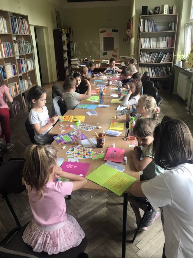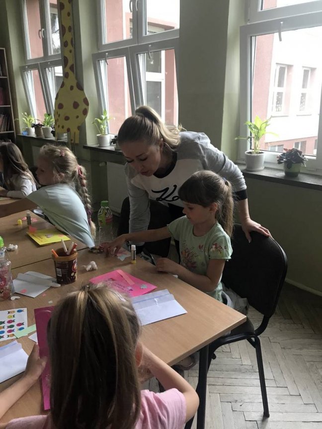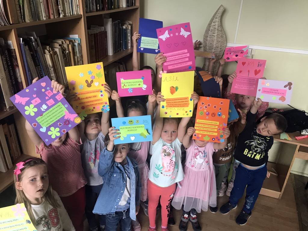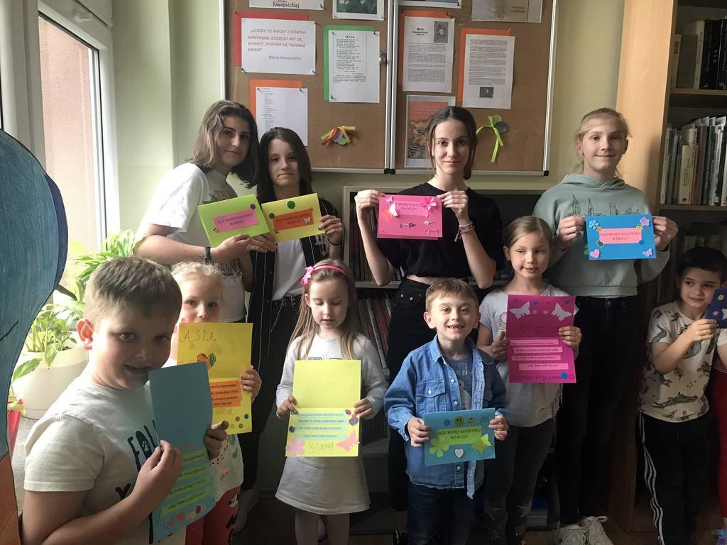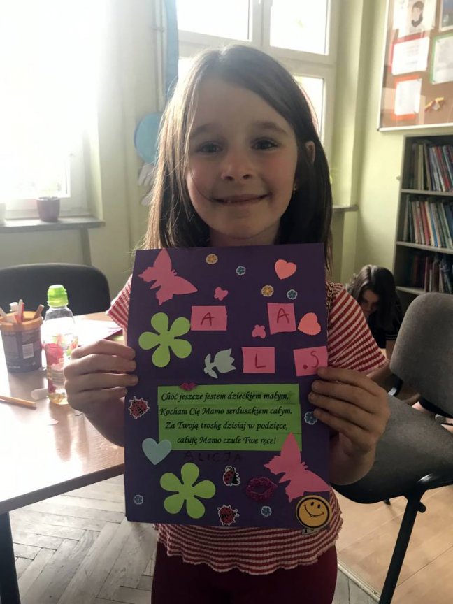 Szybko okazało się, że nasi goście świetnie rymują i są niezwykle kreatywni. Z niewielką pomocą pań udało im się ułożyć piękny wierszyk dla Mam oraz wkleić go do wykonanych przez siebie laurek. Zajęcia odbywały się w sympatycznej i twórczej atmosferze.