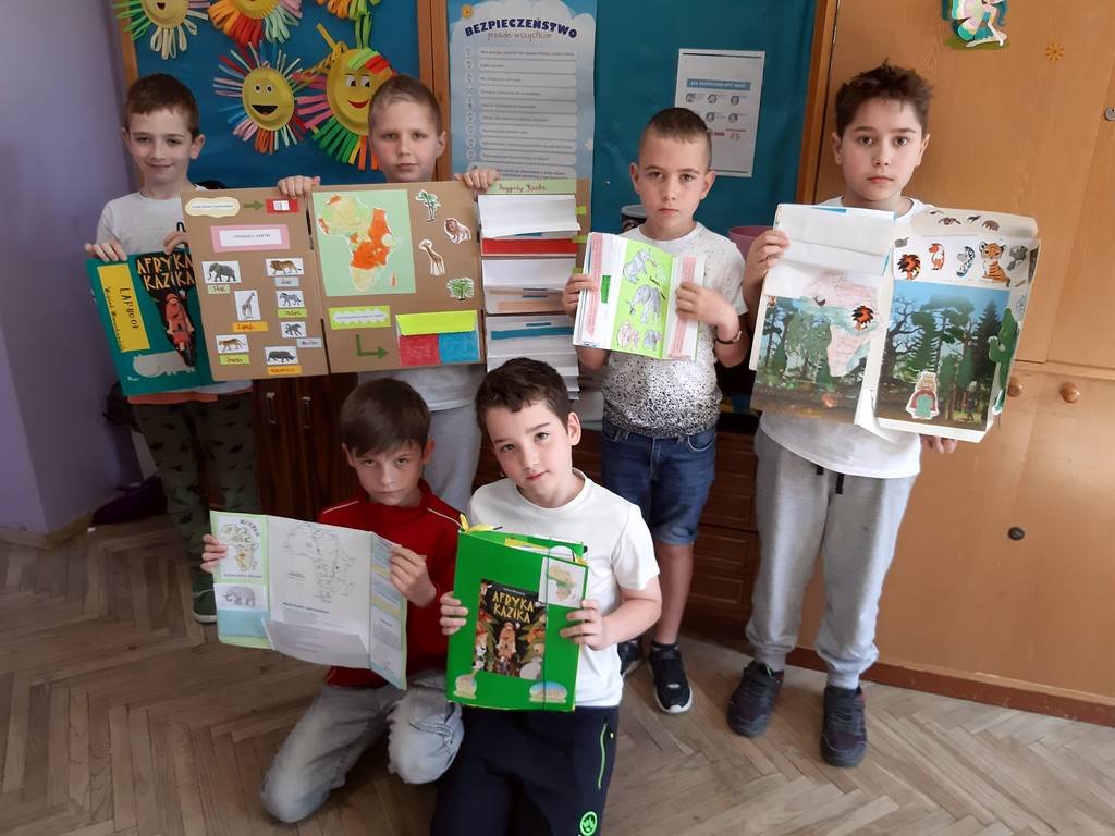Uczniowie z klasy 2a po przeczytaniu i omówieniu lektury napisanej przez Łukasza Wierzbickiego pt.„Afryka Kazika” oraz zebraniu potrzebnych materiałów podczas zajęć lekcyjnych podjęli próbę opracowania w domu LAPBOOKA.