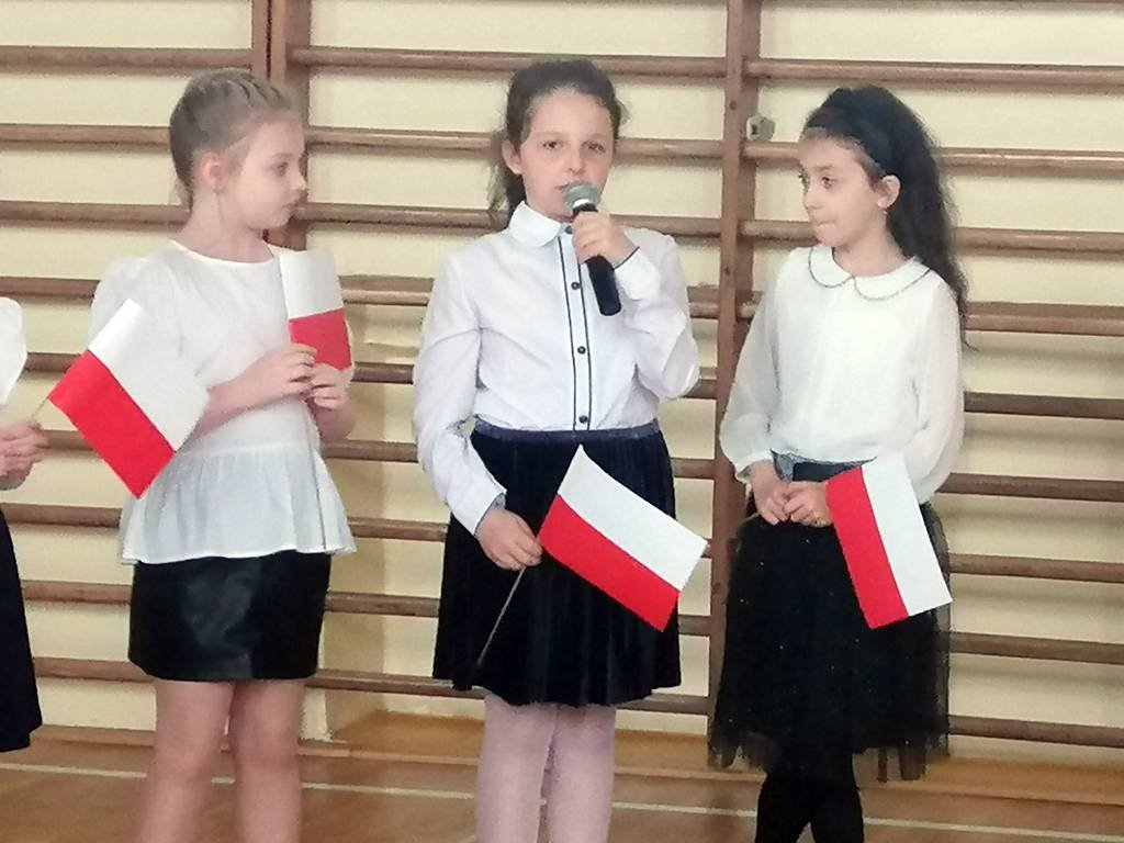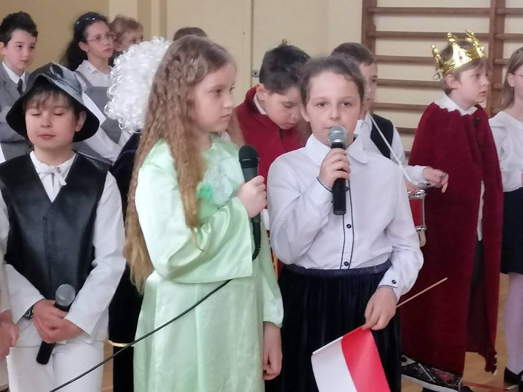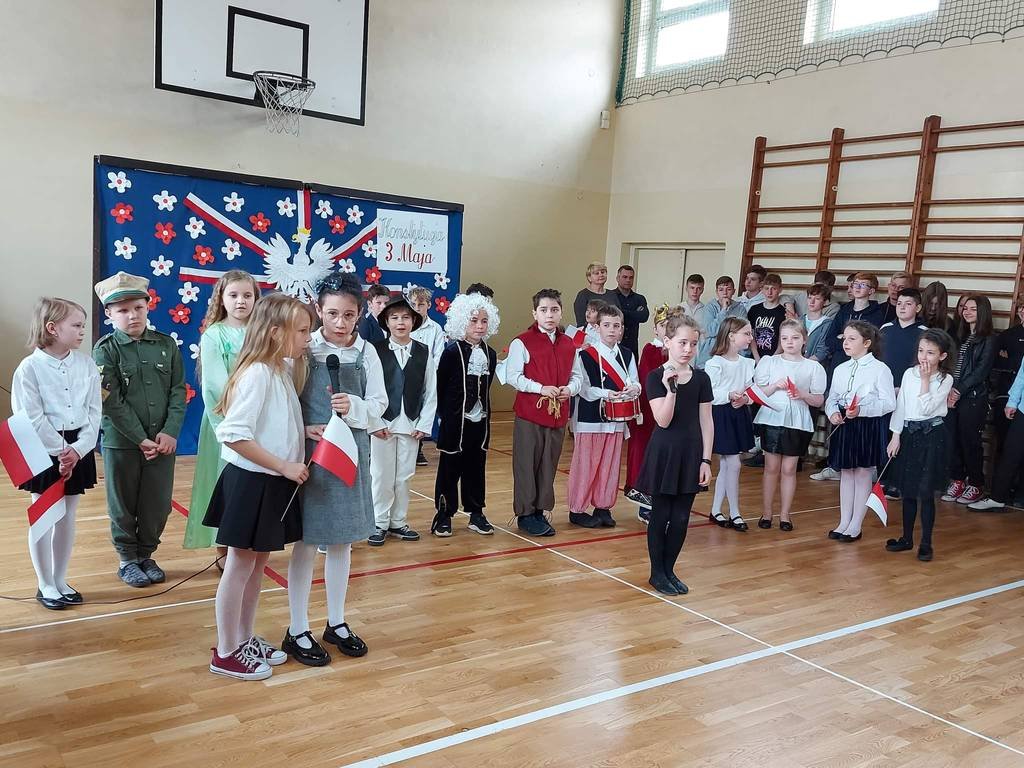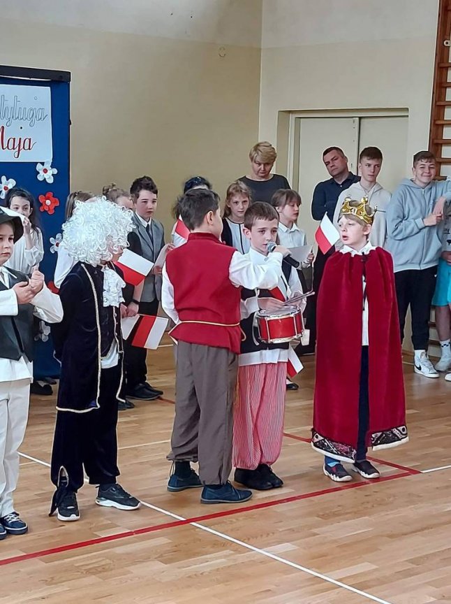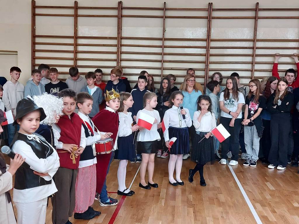 Chcąc przybliżyć uczniom naszej szkoły to ważne wydarzenie z historii naszego kraju, klasa II a z panią Martą przygotowała montaż słowno-muzyczny. Była to okazja do refleksji nad tymi ważnymi wydarzeniami , do pielęgnowania patriotyzmu wśród ucznióworaz do przeżycia dumy z tego, że jest się Polakiem.Uczniowie w pięknych strojach recytowali wiersze, mówiące o tych wydarzeniach, o miłości do Ojczyzny i o Konstytucji. Wiersze były przeplatane piosenkami : „Witaj, majowa jutrzenko…”, „Polonez Trzeciego Maja” itp. Dzięki tej akademii, data 3 Maja 1791 roku pozostanie dla uczniów datą znaczącą. Świat idzie z postępem: komputer, Internet, nowoczesne technologie, ale historia naszego narodu to skarb, który każdy Polak powinien nosić w sercu!
