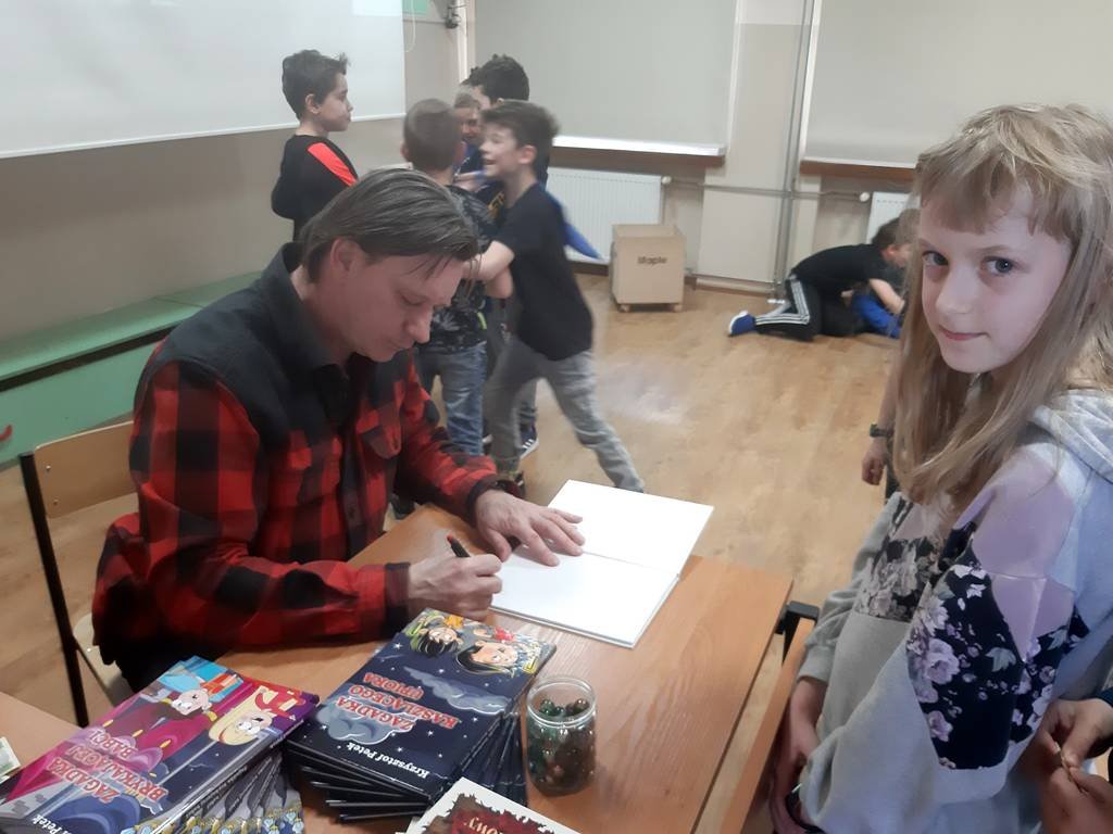 Przekonali się o tym 8 kwietnia uczniowie klas I – III, ponieważ w tym dniu autor odwiedził naszą szkołę. Zaproszony Gość bardzo szybko nawiązał kontakt z młodymi czytelnikami. Na koniec spotkania można było kupić książki napisane przez Pana Krzysztofa wraz z jego autografem.