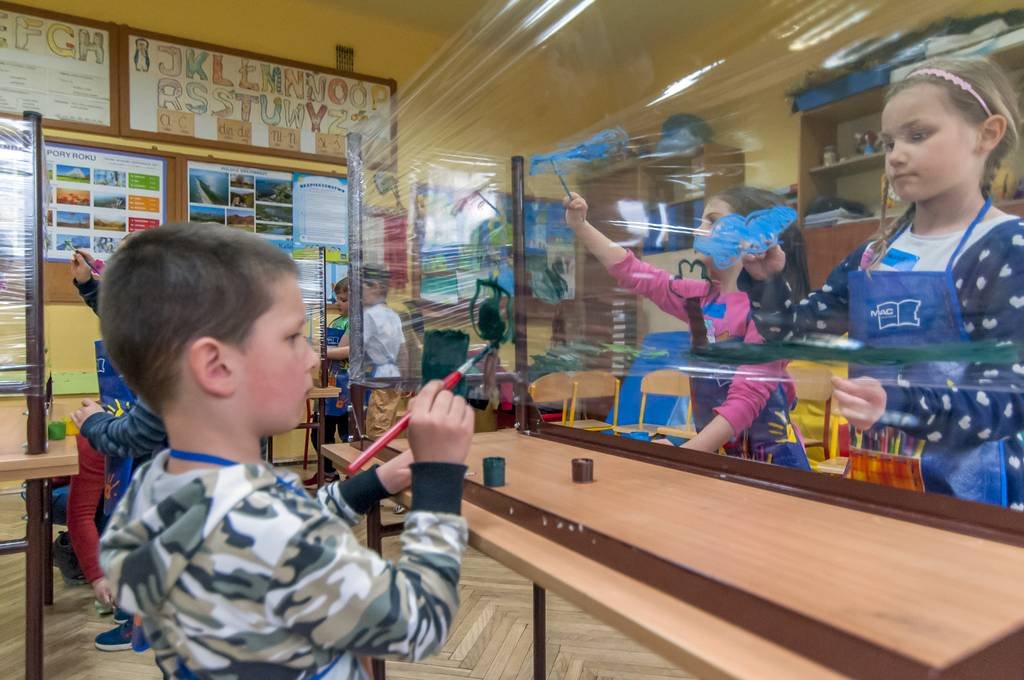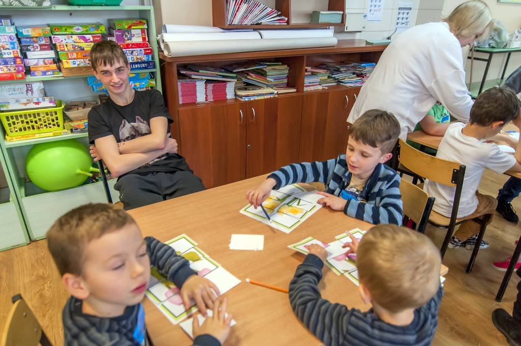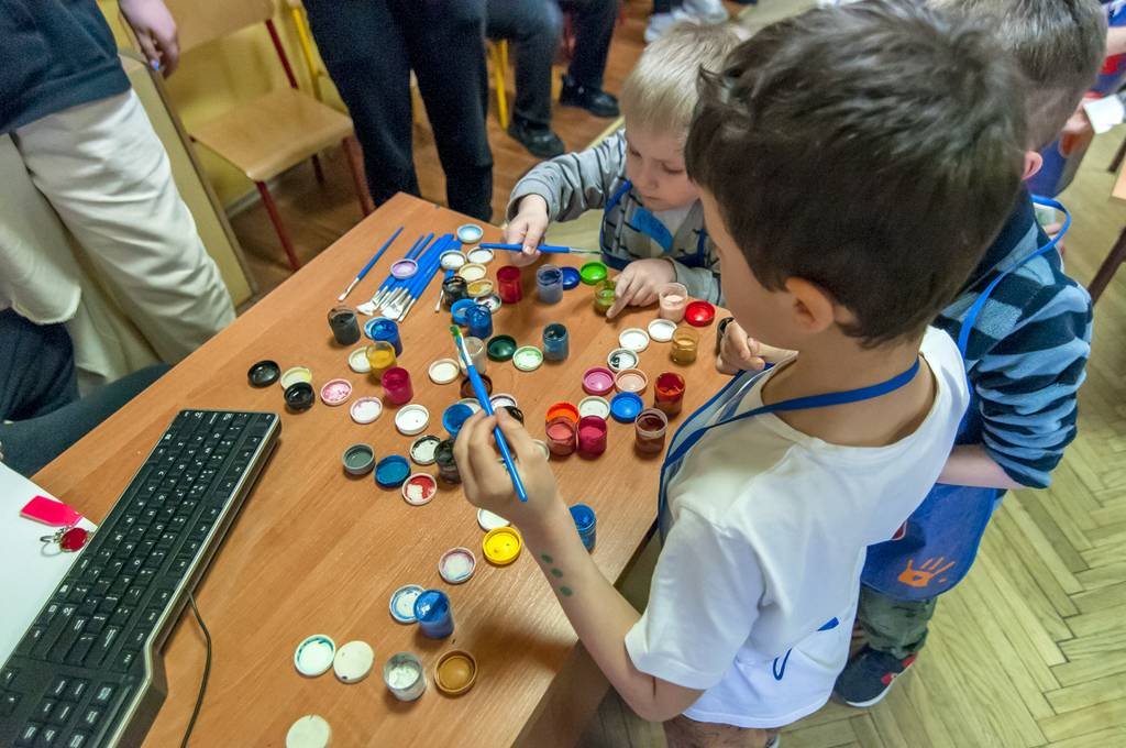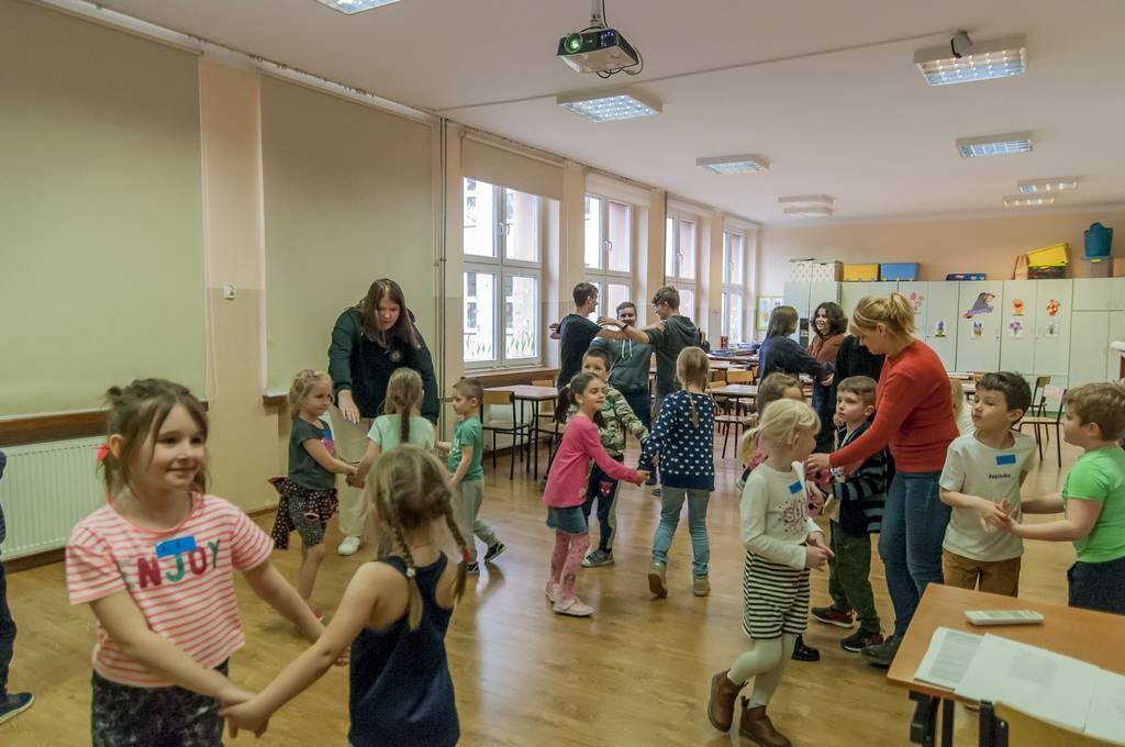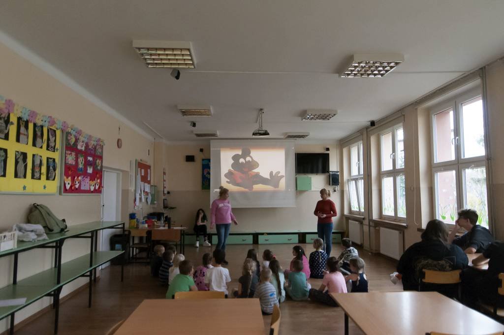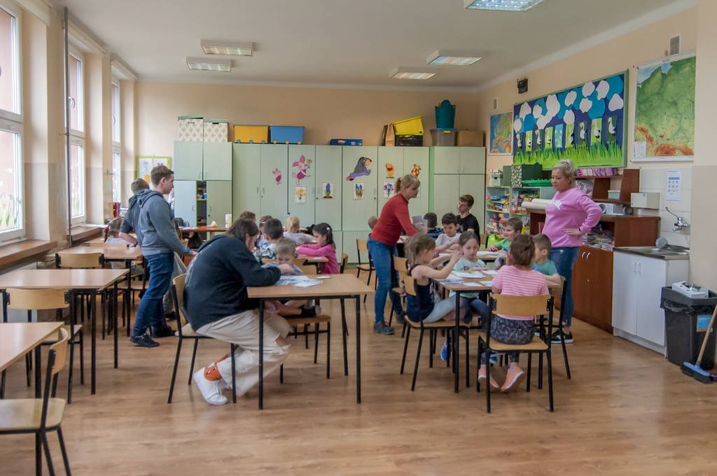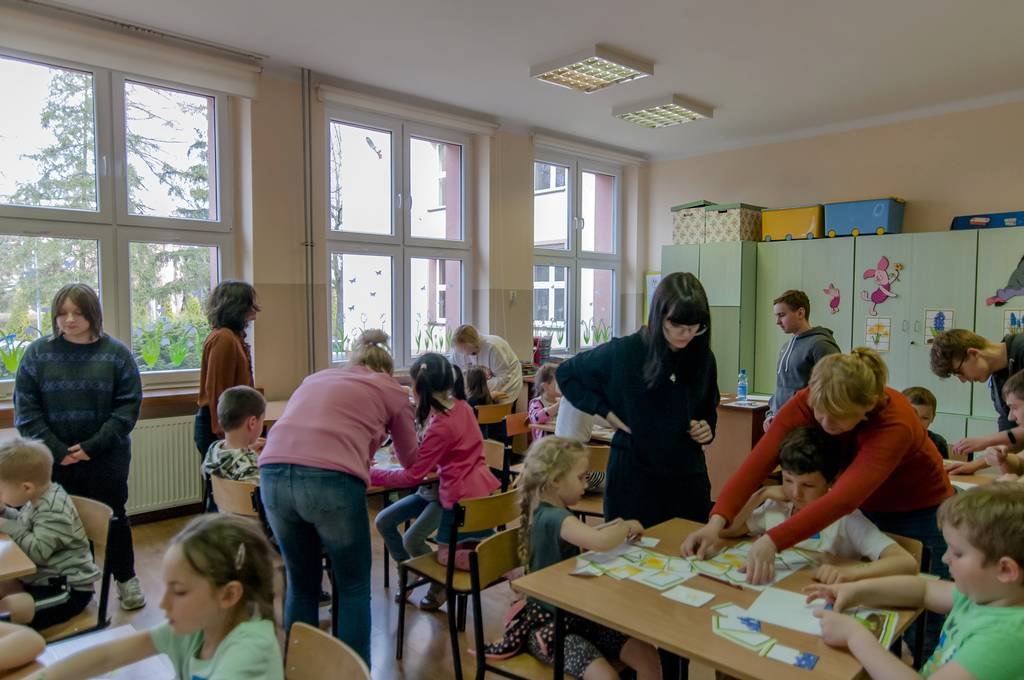Dnia 5 kwietnia odbyły się kolejne zajęcia dla przedszkolaków. Dzieci poznały świetlicę szkolną, brały udział w zajęciach świetlicowych związanych z tematyką wiosenną. Wykonały pracę plastyczną, nauczyły się piosenki o wiośnie, uczestniczyły w zabawach ruchowych z chustą animacyjną oraz poznały nową technikę malowania na folii. Nie obyło się też bez słodkiego poczęstunku. Mali artyści wyszli bardzo zadowoleni.