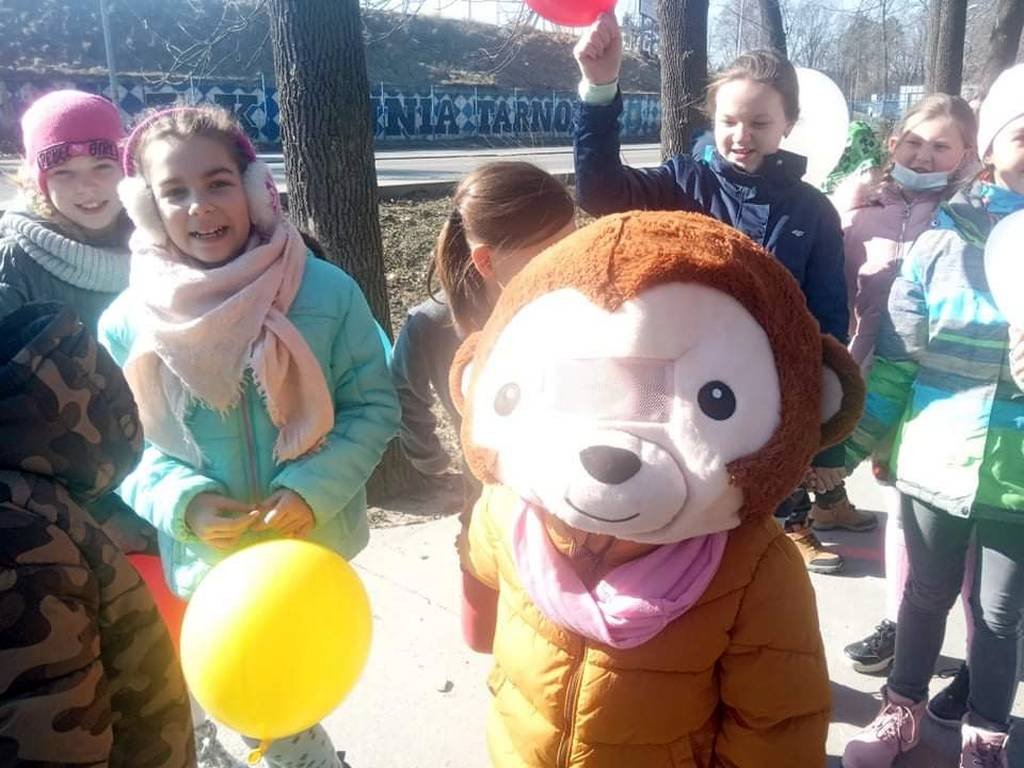 W barwnym korowodzie przemaszerowali alejkami i uliczkami Mościc niosąc kolorowe balony, kwiaty. Towarzyszyła im również postać Marzanny. Roześmiany i barwny korowód wzbudzał zainteresowanie korzystających z pogody przechodniów.