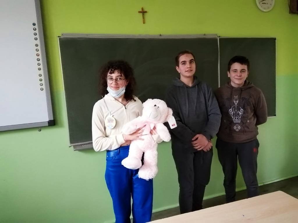 Największą liczbę głosów otrzymała KAROLINA KANIA Z KLASY 8C. Karolina została obdarowana MEDALEM SUPER DZIEWCZYNY, oraz pięknym różowym misiem.