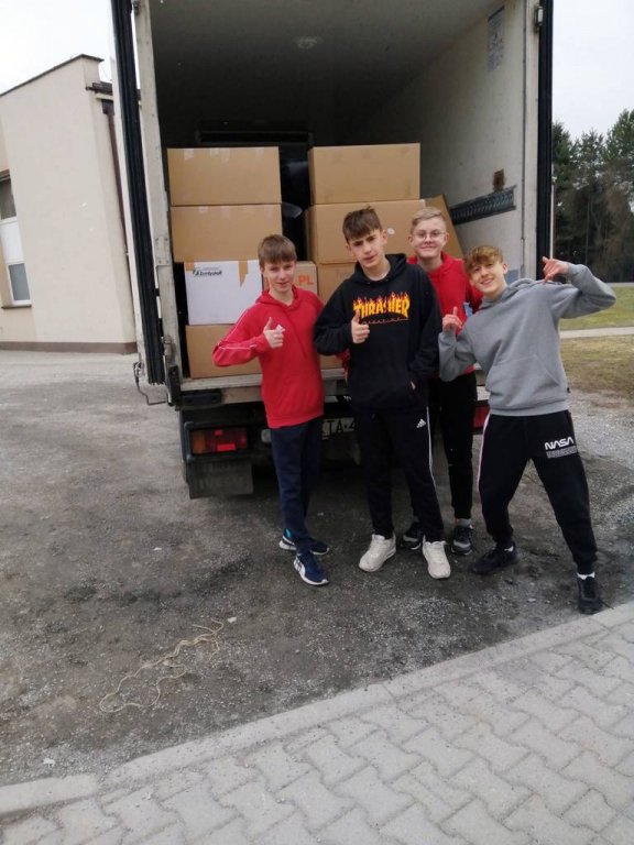 mieszkają w naszym mieście a Olaksandra uczy się w naszej szkole. W ciągu tygodnia zebraliśmy 40 dużych pudeł 20 zgrzewek mineralnej, 4 duże worki materiałów higienicznych i odzieży. Przekazane to zostało do transportu humanitarnego, który jest przygotowywany przez UM Tarnowa. Przygotowaliśmy również dary dla parafii polskiej w Brodach. SERDECZNIE DZIĘKUJĘ wszystkim darczyńcom. teraz jeszcze staramy się o pracę dla p. Oliny, tak aby mogły w sposób samodzielny i nieskrepowany mieszkać i żyć w Tarnowie.