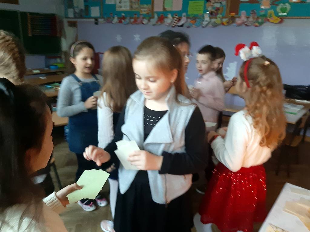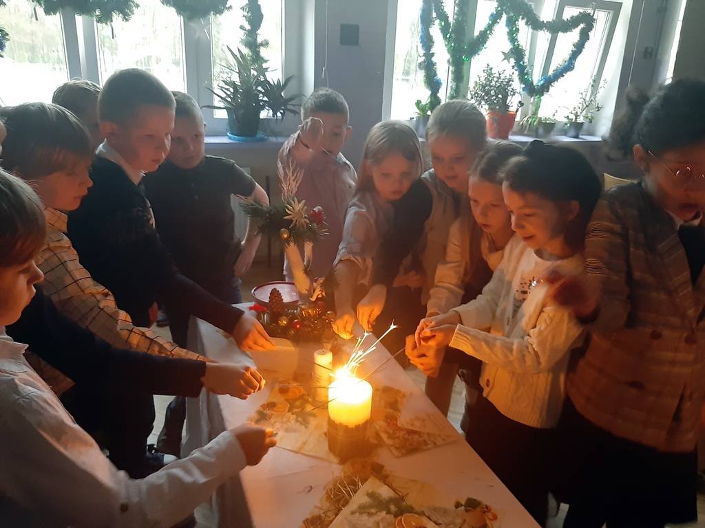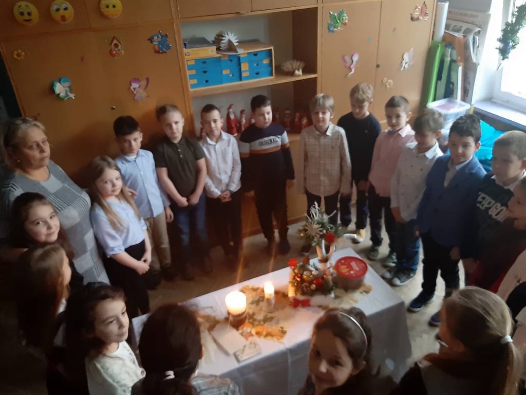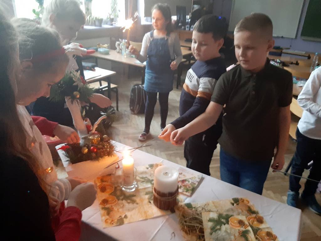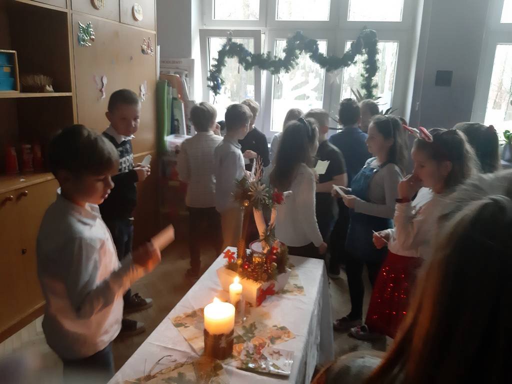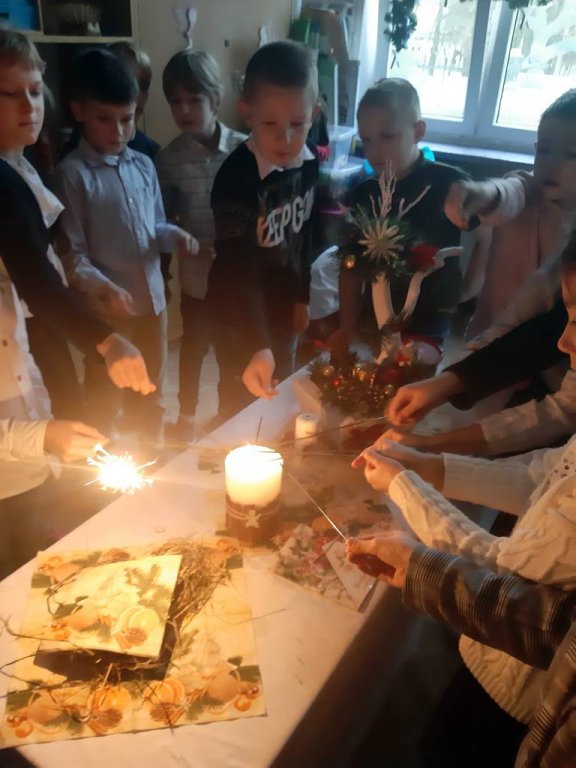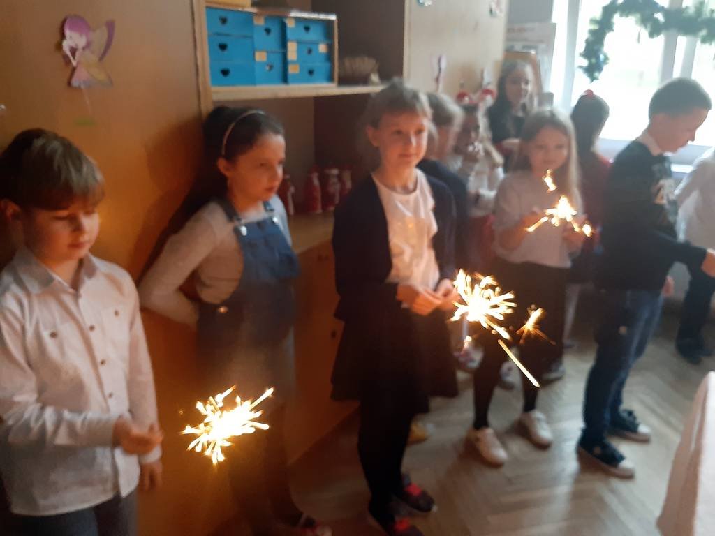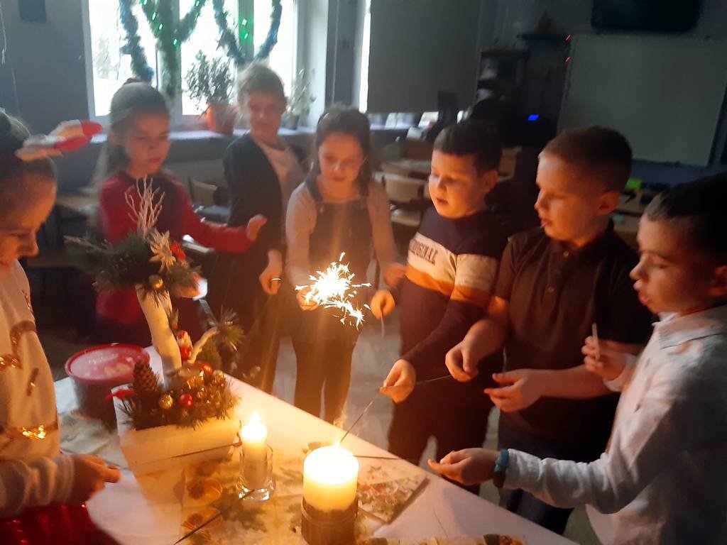 W naszej klasie Wigilia rozpoczęła się 17 grudnia na drugiej godzinie lekcyjnej. W świąteczną atmosferę wprowadziła nas wspólna modlitwa, życzenia składane podczas łamania się opłatkiem, śpiewanie kolęd i rozpalanie zimnych ogni. Zgodnie z tradycją na wigilijnym stole znalazł się opłatek, sianko, stroik, świeca oraz pierniczki. Było naprawdę świątecznie i magicznie…