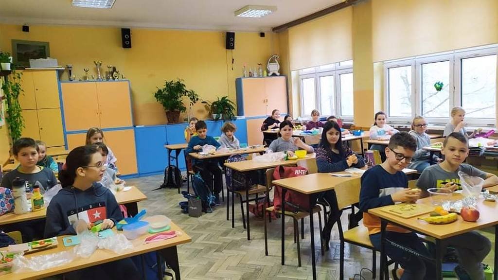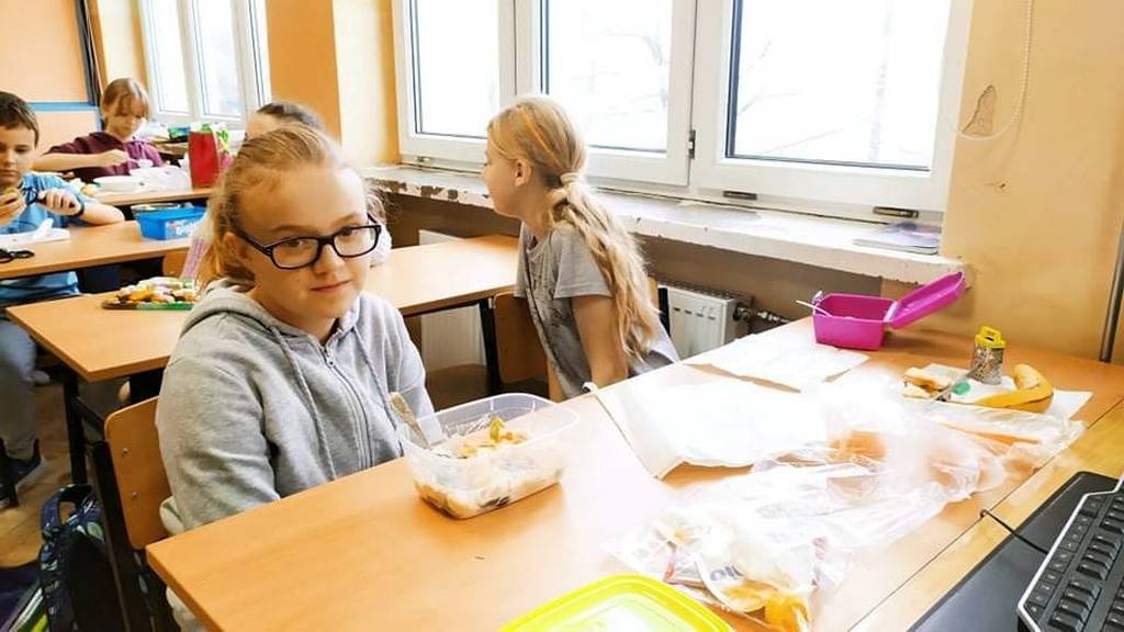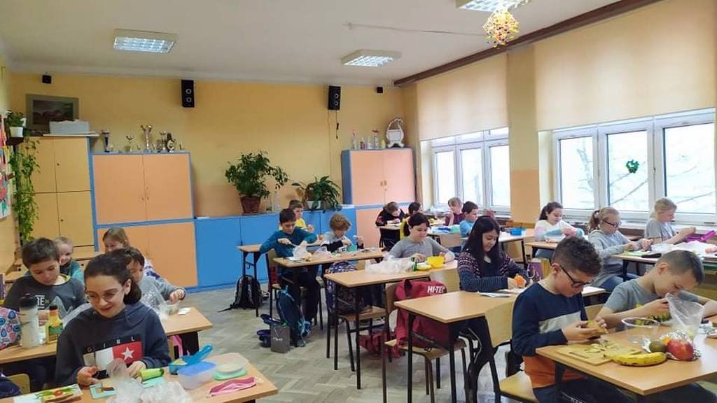 Uczniowie dobrze bawili się tworząc swoje posiłki i jeszcze lepiej jedząc je. Na koniec lekcji jedna z dziewczynek przygotowała dla pani przepyszną, magiczną kanapkę.