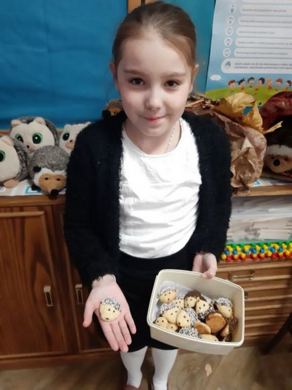 W tym dniu uczniowie poprzynosili różne przedmioty związane z jeżem. Były to maskotki, książki, ubrania, a nawet pyszne ciastka w kształcie jeżyków. Z tej okazji odbył się klasowy konkurs recytatorski wierszy o jeżu, warsztaty kulinarne „Owocowy jeżyk” i zajęcia plastyczne. Ponadto nie mogło zabraknąć tradycyjnych zabawach ruchowych połączonych ze śpiewem „A to jeż”. Dzień Jeża spędziliśmy bardzo miło i sympatycznie.
