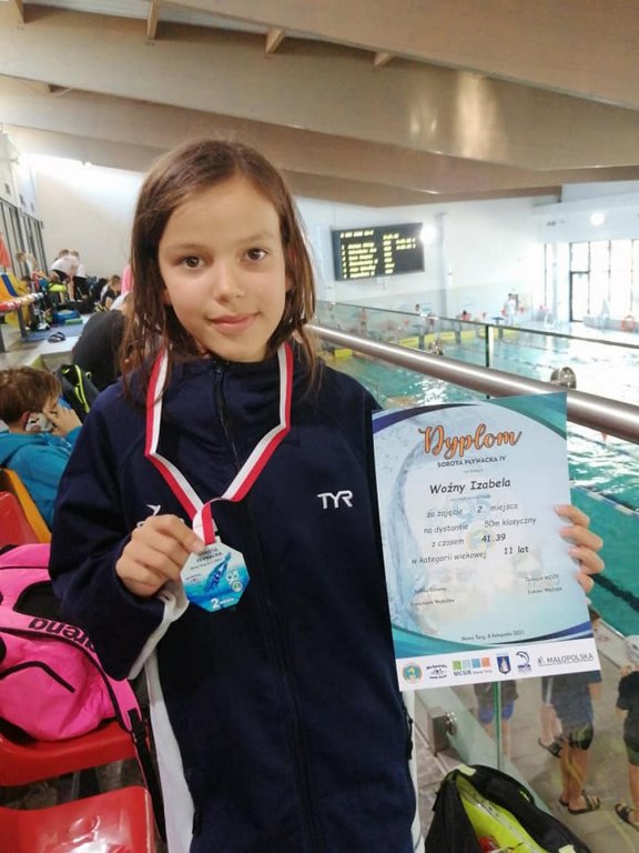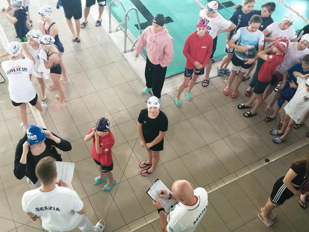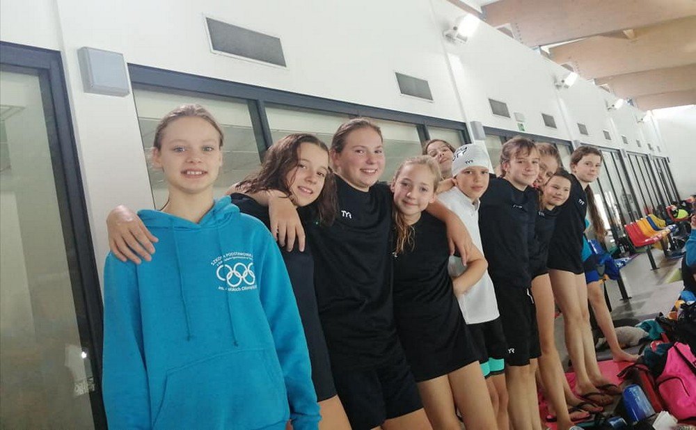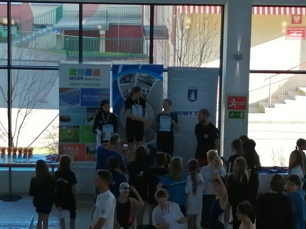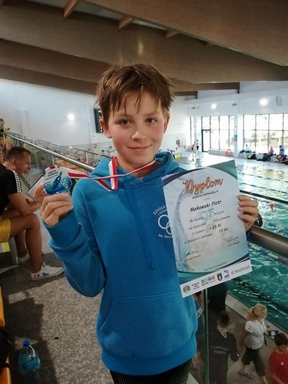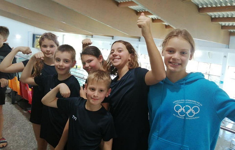 Wszyscy spisali się bardzo dobrze i mocno kibicowali całej ekipie duże brawa należą się pozostałym naszym uczniom którzy również pięknie popływali Iza Woźny zajęła miejsce na 50 klas Piotr Makowski na 100 dow. Matylda Szwiec na 100 zm. Marysia Łakoma 2x na 50 mot i 200 dow. i dołożyła jeszcze w klasyfikacji generalnej dziewcząt 13-letnich swoje rekordy życiowe poprawili także Marcelina Augustyn Daniel Kania Salomea Lizak Natalia Gromadzka Nina Grajdura Martynka Gorgosz i Jagoda Aleksander duże brawa dla wszystkich