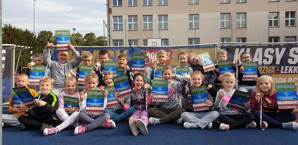 Po miesiącu dodatkowych zajęć sportowych z lekkoatletyki oraz piłki nożnej, dzieci klas I, miały okazję sprawdzić swoje umiejętności na torze sprawności, dostosowanym do ich wieku. Uczniowie aktywnie i z dużym zaangażowaniem brali udział w zajęciach. Bardzo szybko opanowali złożone zadania ruchowe,wykazując się świetną sprawnością i koordynacją. Nauczyciele wychowania fizycznego oraz trenerzy dziękują za miło spędzony czas oraz doskonałą współpracę.