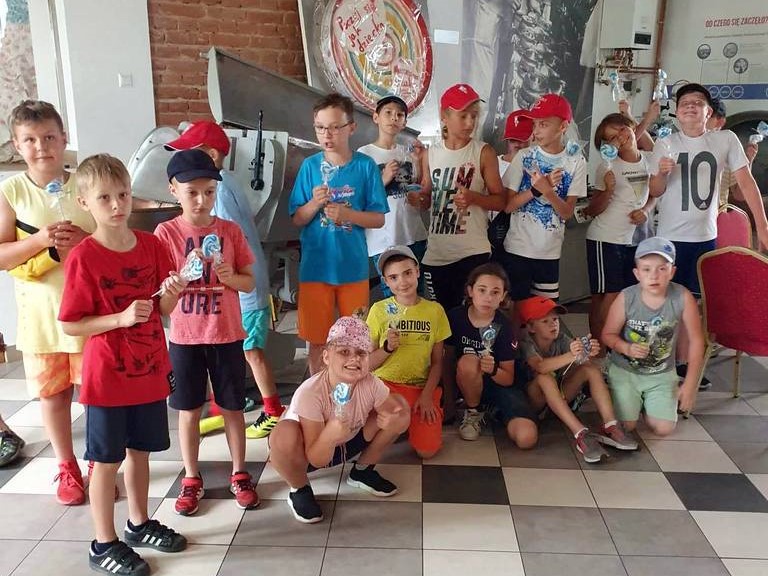 Rano półkoloniści kończyli układanie mozaiki z koralików. Przed wyjściem na basen kryty w Mościcach dzieci spotkały się z piłkarzami ręcznymi Grupy Azoty Unii Tarnów trenującymi na naszych obiektach sportowych.