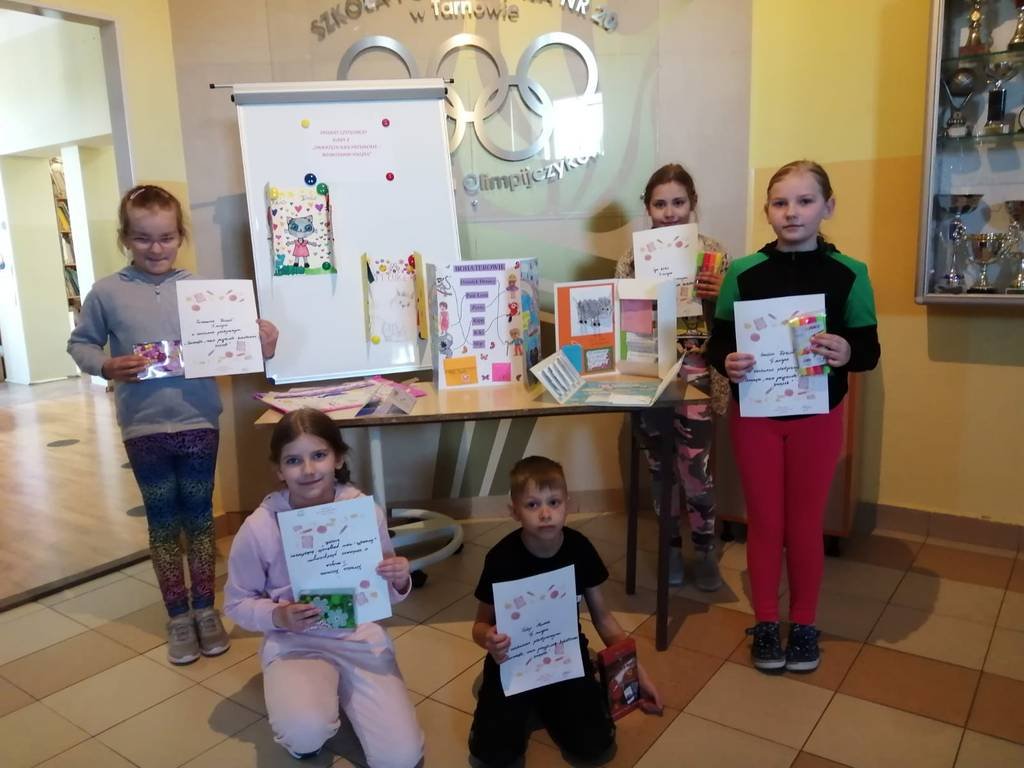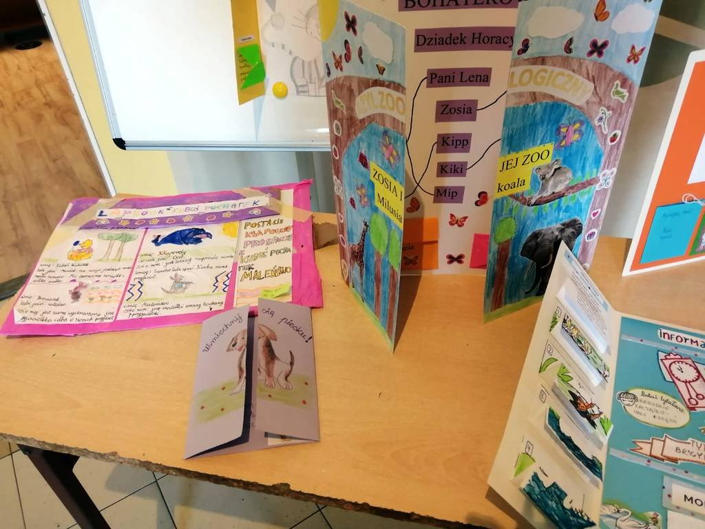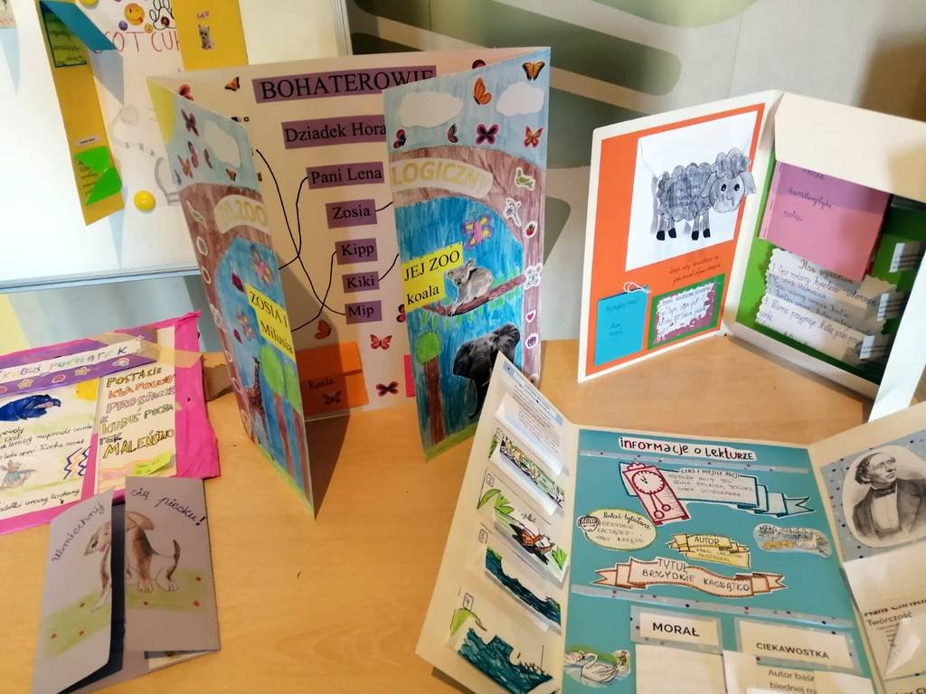 Wszystkie prace dzieci są bardzo ciekawe i zachęcają do sięgania po poszczególne tytuły. Uczniowie najciekawszych lapbooków otrzymali nagrody i dyplom, a ich prace można oglądać na wystawie w bibliotece.