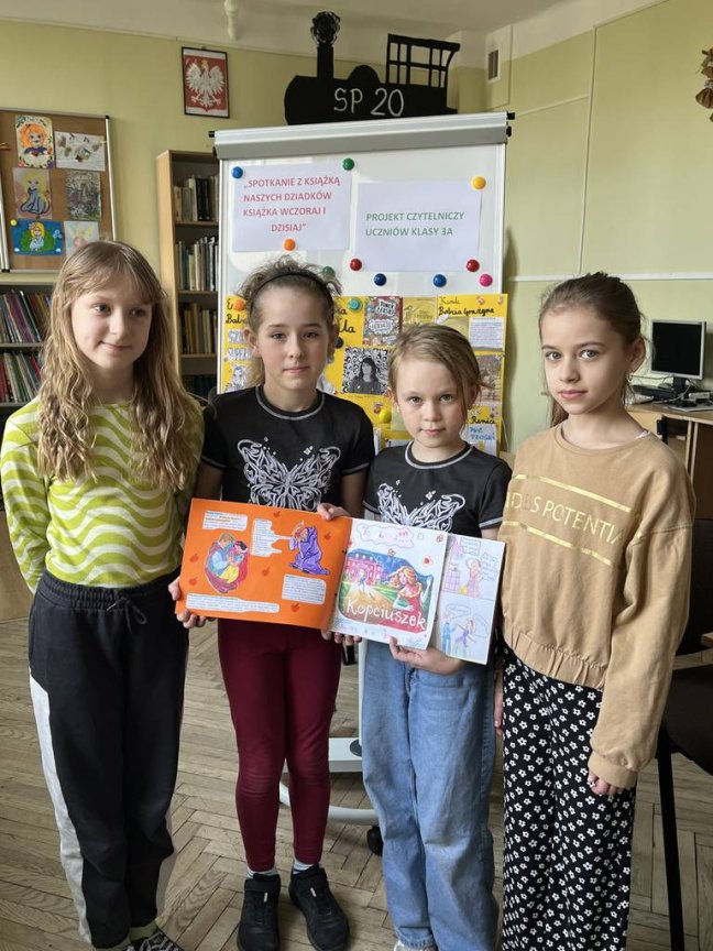 Rozmowy dzieci z babciami i dziadkami zaowocowały bardzo interesującymi pracami literacko – plastycznymi lapbookami, które pokazują, że mimo upływu lat wiele książek się nie starzeje i wciąż są chętnie czytane. Wykonane lapbooki można oglądać na wystawie w bibliotece.