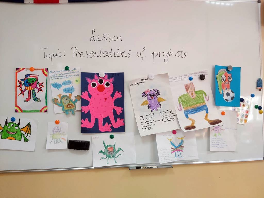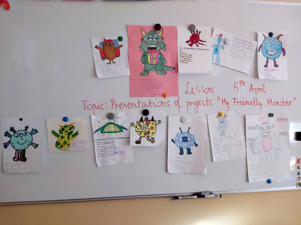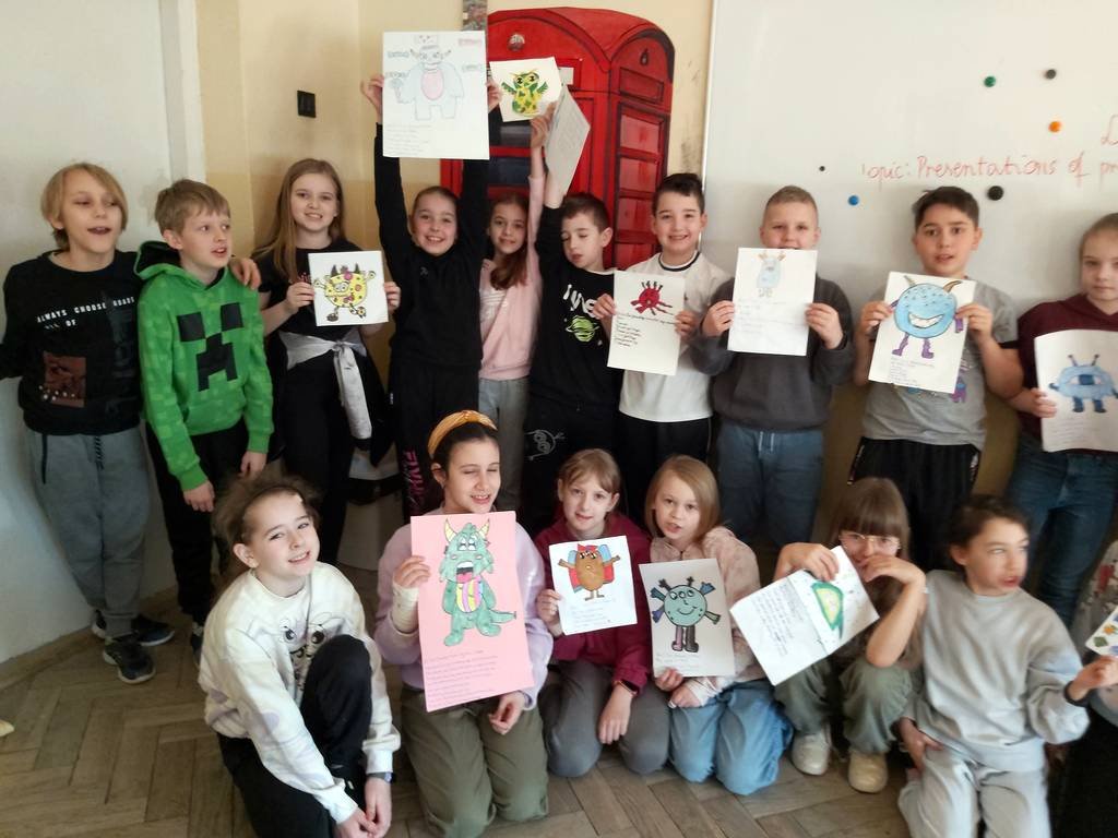 Uczniowie wykazali się dużą kreatywnością. Za pomocą prostych czasowników opisali wygląd zewnętrzny, kolory oraz charakterystyczne cechy potworka. Nadali mu imię, a co najważniejsze przedstawili swój projekt swoim koleżankom