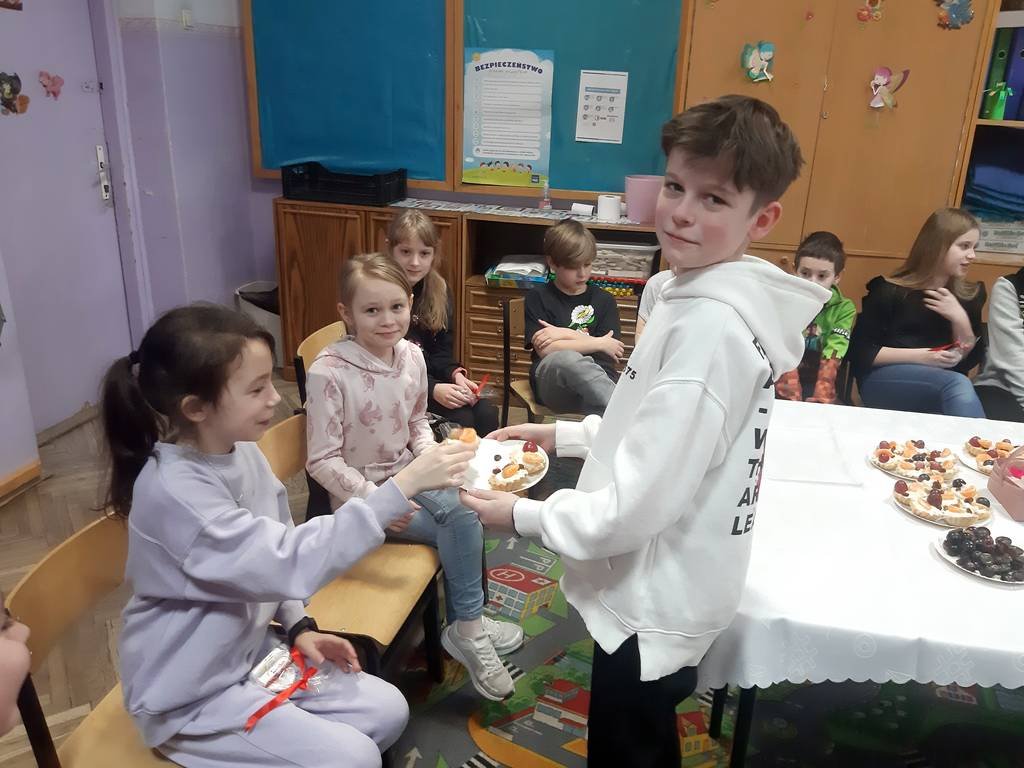 Z okazji Dnia Kobiet chłopcy przygotowali swoim koleżankom niespodziankę. Były to samodzielnie przygotowane i udekorowane słodkie „ Babeczki z owocami”.