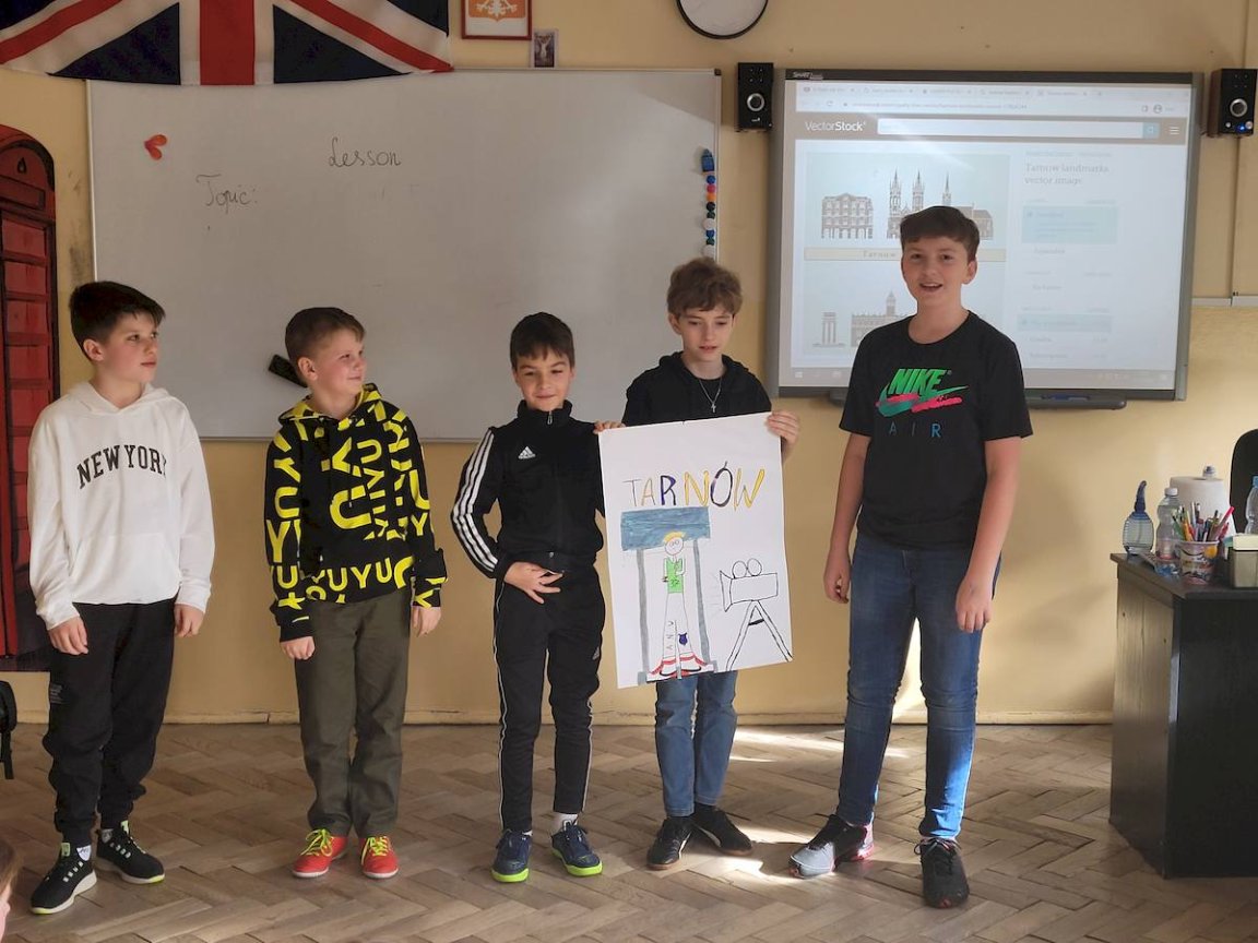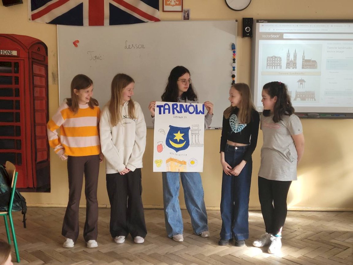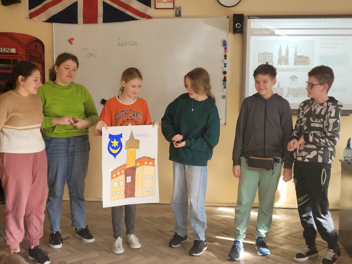 Przez 2 dni nasi goście prowadzili zajęcia z naszymi uczniami w języku angielskim. Młodzież miała okazję dowiedzieć się wielu ciekawych rzeczy o wyżej wymienionych krajach oraz poznać kilka słów w ich ojczystych językach. Ponadto były gry, zabawy ruchowe i językowe,wspólne tańce i śpiewy oraz projekty. We wtorek po południu uczniowie kl.8 udali się na krótki spacer po Tarnowie a następnie mieli okazję poćwiczyć swój angielski przy ciastku i herbatce.