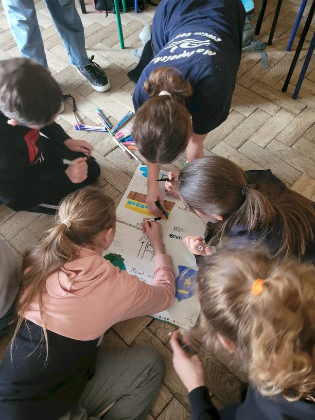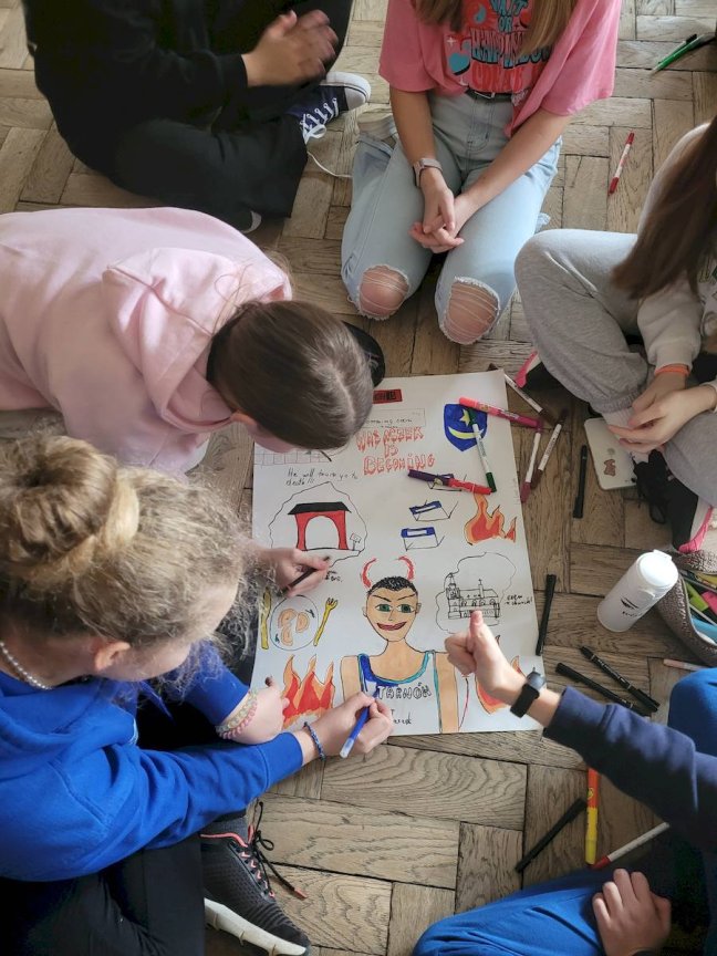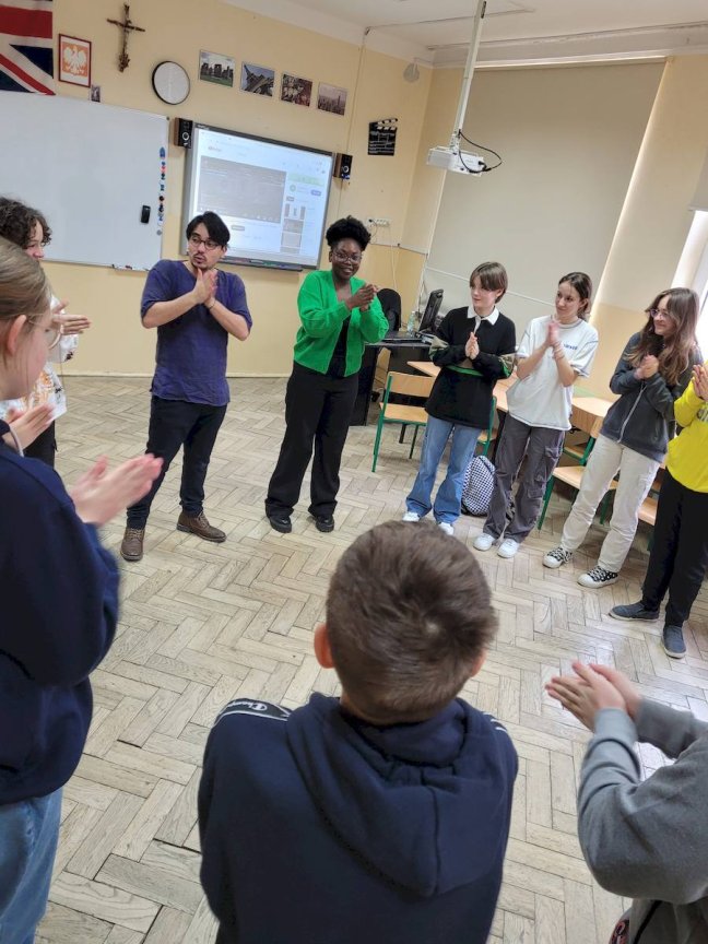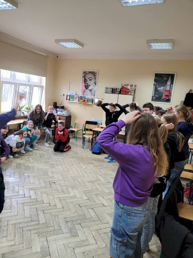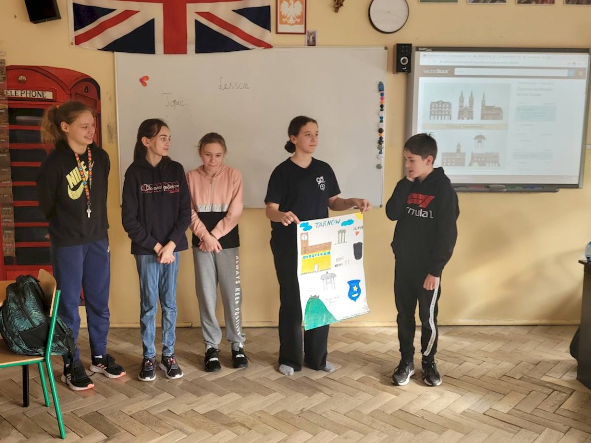 Przez 2 dni nasi goście prowadzili zajęcia z naszymi uczniami w języku angielskim. Młodzież miała okazję dowiedzieć się wielu ciekawych rzeczy o wyżej wymienionych krajach oraz poznać kilka słów w ich ojczystych językach. Ponadto były gry, zabawy ruchowe i językowe,wspólne tańce i śpiewy oraz projekty. We wtorek po południu uczniowie kl.8 udali się na krótki spacer po Tarnowie a następnie mieli okazję poćwiczyć swój angielski przy ciastku i herbatce.