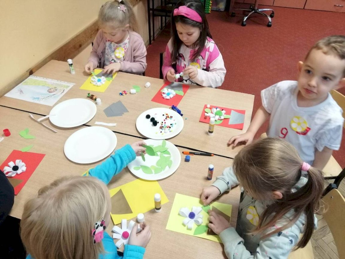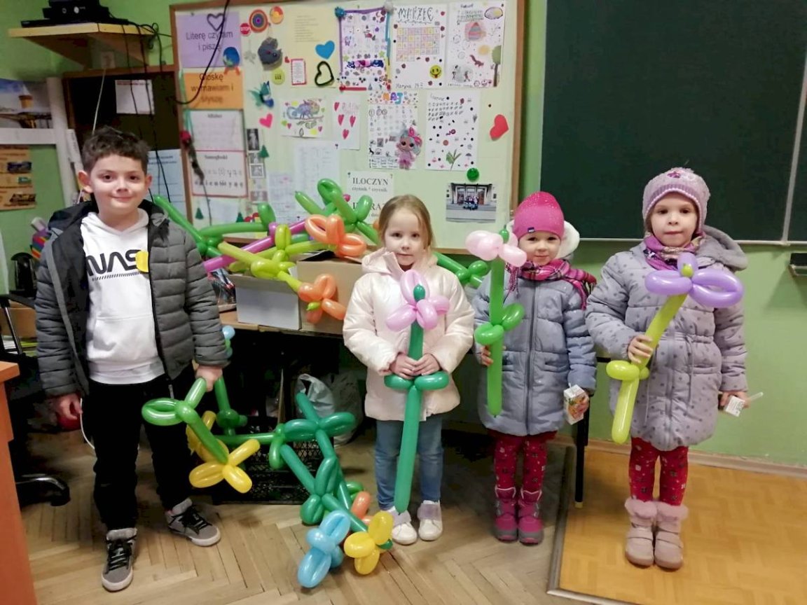 Rodzice w trakcie zajęć z dzieci uczestniczyli w spotkaniu z Panem Dyrektorem Andrzejem Kotem, zapoznając się z różnorodną ofertą edukacyjną szkoły. W tym czasie przedszkolaki brały udział w zabawach ruchowych, zajęciach plastycznych i taneczno- muzycznych. Miały również okazję zobaczyć i uczestniczyć w zajęciach z języka angielskiego. Biblioteka przywitała dzieci wiosenną poezją połączoną z pokazem multimedialnym. Zakończeniem spotkania był wspólny poczęstunek. Po zajęciach przedszkolaki otrzymały wiosennego balonowego „Kwiatuszka”. Dziękujemy z wszystkim Gościom Małym i ich Rodzicom.