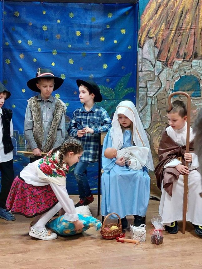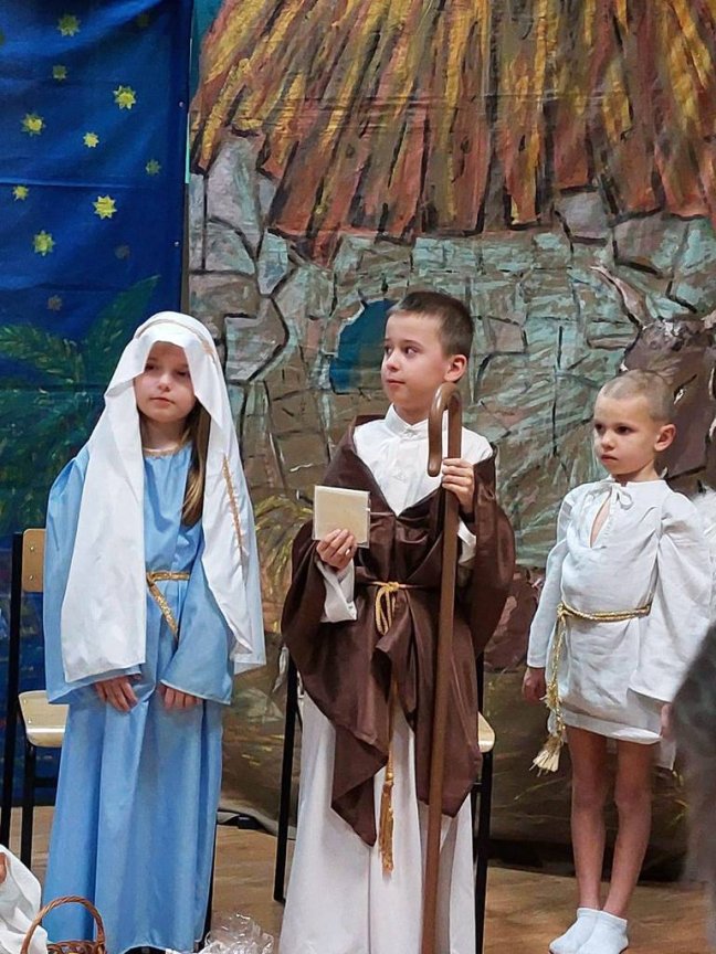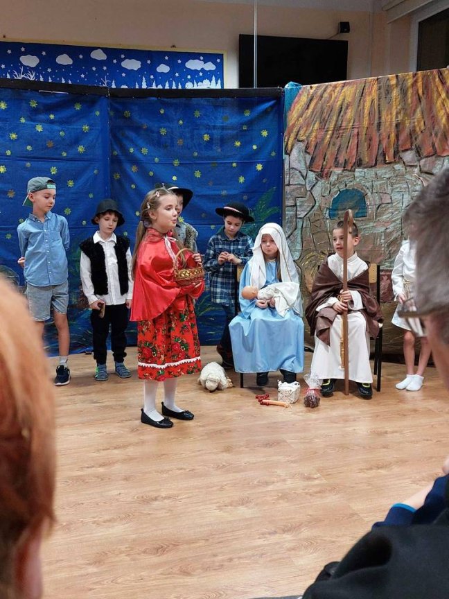25 stycznia uczniowie klasy 1a wspólnie z wychowawcą Iwoną Wojnarowicz przygotowali jasełka bożonarodzeniowe.