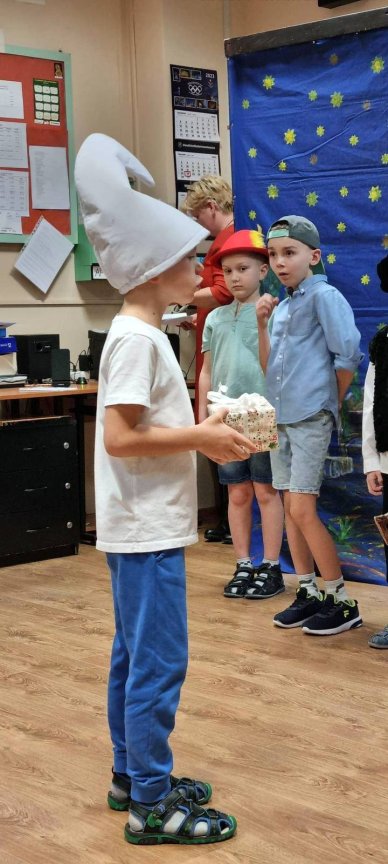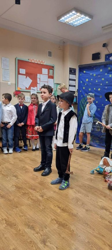 Wśród postaci, które przyszły złożyć pokłon znalazły się postacie niezwykłe: Jaś i Małgosia, Pinokio, dziewczynka z zapałkami... Ale były i tradycyjne akcenty w postaci kolęd. Wśród zaproszonych gości znaleźli się styczniowi solenizanci- Babcie i Dziadkowie, których po występie zaproszono na słodki poczęstunek.