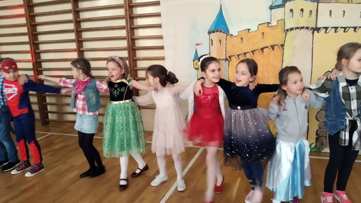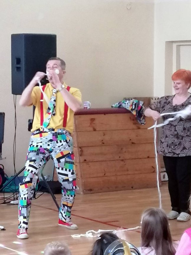 Przy skocznej muzyce i znanych szlagierach uczniowie dali upust swojej energii. W przerwach między kolejnymi zabawami tanecznymi popisywał się swoją zręcznością i sztuczkami klaun Fred. Był również czas na odzyskanie sił po małym co nieco przygotowanym przez rodziców.