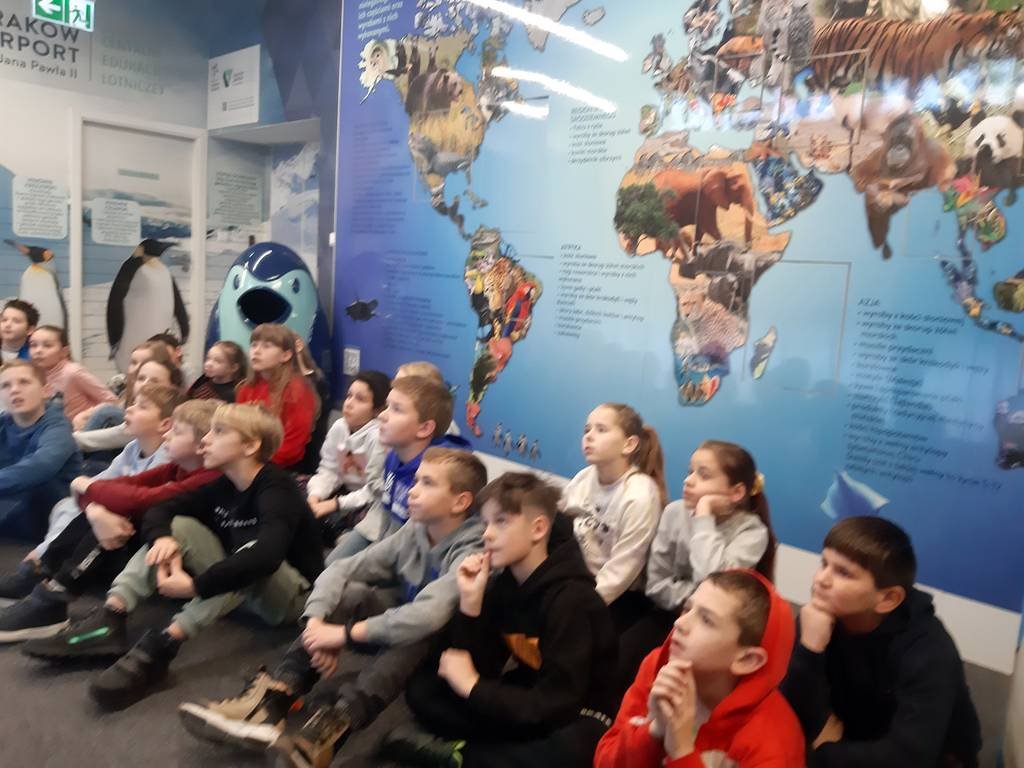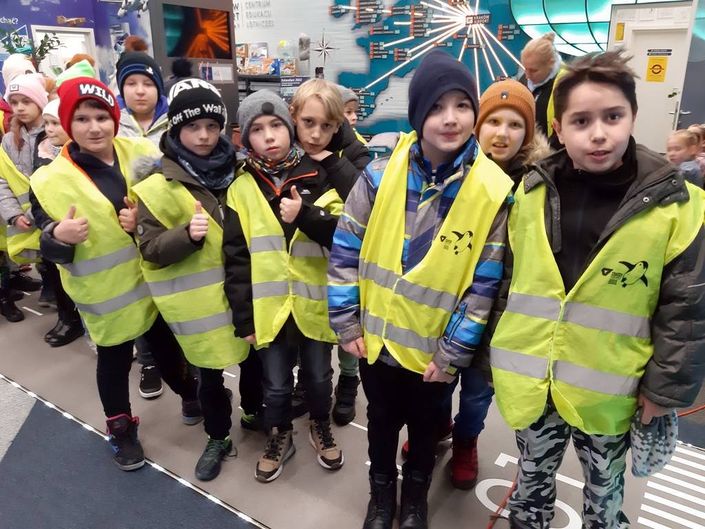 Następnym punktem wycieczki była wizyta na lotnisku w Balicach. Podczas zwiedzania i warsztatów w Centrum Edukacji Lotniczej dzieci poznały organizację oraz zasady funkcjonowania lotniska. Z tarasu widokowego mogły zobaczyć jak startują i lądują samoloty. Na koniec wycieczki dzieci pojechały do Fabryki Ozdób Choinkowych. Podczas pokazu uczestnicy poznali dogłębnie proces produkcji szklanych bombek choinkowych, a w czasie warsztatów pod okiem profesjonalistów z branży pomalowali własnoręcznie bombkę, którą potem zabrali do domu.