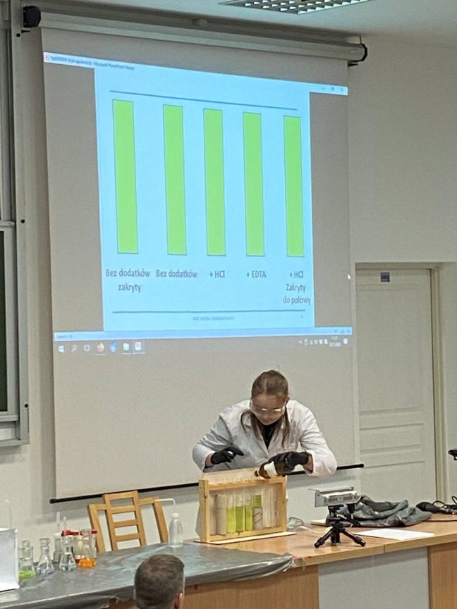 Podczas cyklicznie odbywających się zajęć nauczyciele akademiccy Katedry Chemii tarnowskiej Akademii Nauk Stosowanych udowadniają, że chemia jest w nas i wokół nas, żywi, leczy, upiększa, ogrzewa, buduje – jest wszechobecna. Niezwykle interesujący wykład – na temat związku spinu elektronowego z komputerem kwantowym - poprowadził dr inż. Piotr Niemiec – absolwent SP nr 20 w Tarnowie, który na wstępie w ciepłych słowach wspominał naszą szkołę. Natomiast dr Marta Markowicz bardzo ciekawie mówiła na temat ekologii i chemii stosowanej w ogrodzie. Doświadczenia przeprowadzone przez studentów co rusz sprawiały, że z sali można było usłyszeć gromkie brawa.