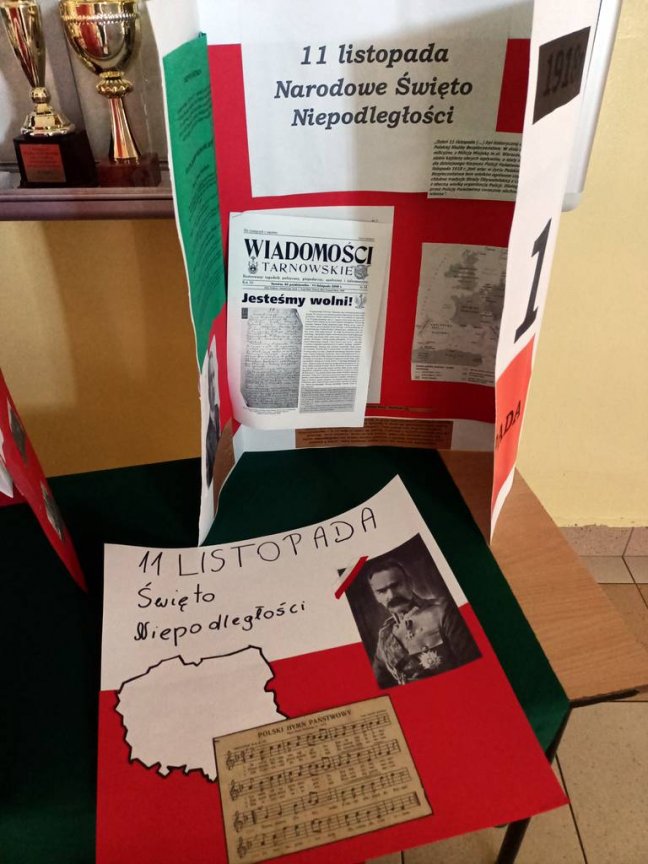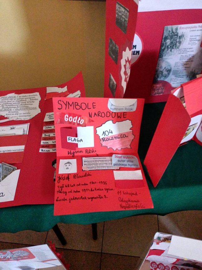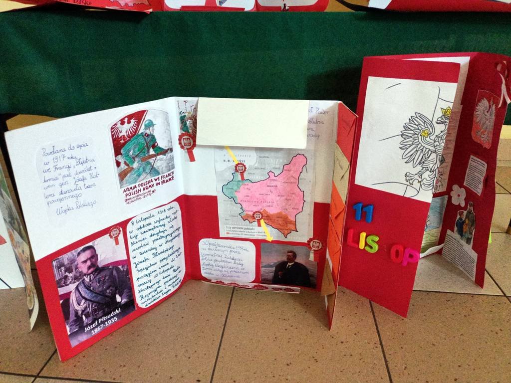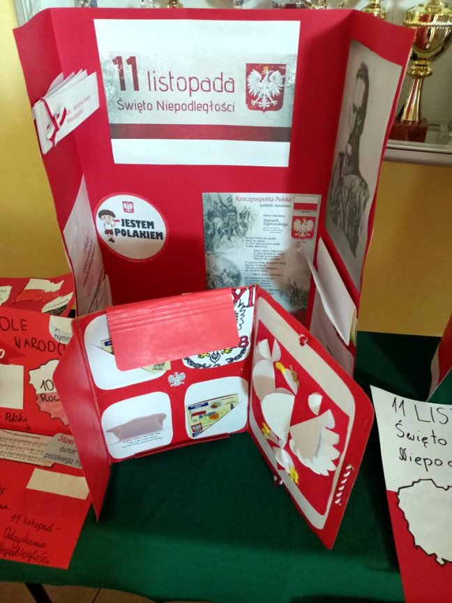 Uczniowie klasy 3a, zainspirowani opowieściami pani Marty Kamykowskiej, oraz cyklem książek dla dzieci o ważnych osobach i wydarzeniach historycznych dla Polski, m.in. książką Wojciecha Widłaka „Komendant wolnej Polski” o Józefie Piłsudskim, wykonali lapbooki – książki tematyczne o 11 listopada.