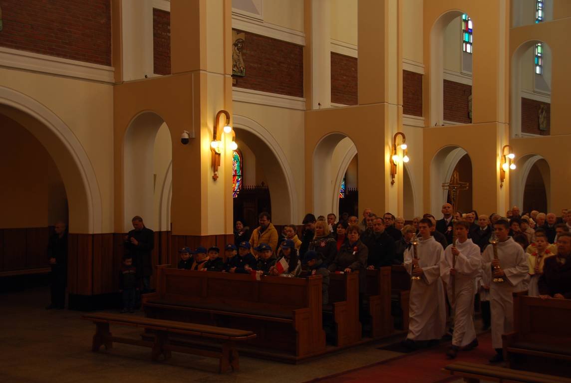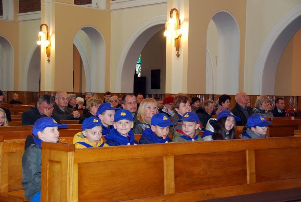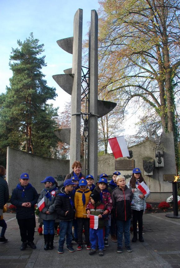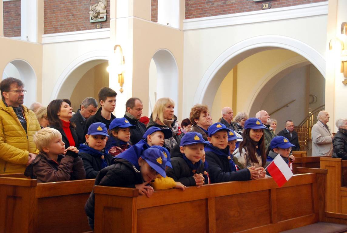 Na początku braliśmy udział we Mszy św. za Ojczyznę w Kościele NMP w Mościcach. Potem dalsze obchody uroczystości miały miejsce na cmentarzu przy Pomniku Żołnierzy i Harcerzy, którzy zginęli w czasie II wojny światowej. Tam nasza gromada zapaliła znicze. Zuchy zdobyły tym samym sprawność „Orła Białego”, realizując 1 punkt Prawa Zucha - Zuch kocha Boga i Polskę.