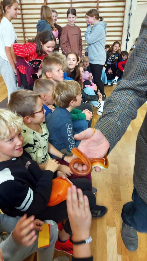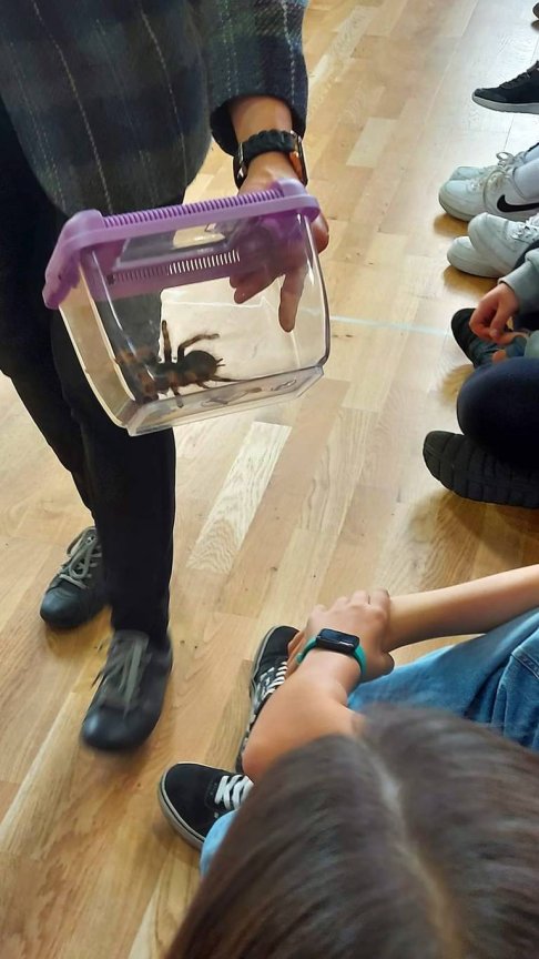Dzisiaj gościliśmy w naszej szkole niezwykłych przedstawicieli świata zwierząt. Podczas dwóch spotkań uczniowie klas 4-8 mieli okazję zobaczyć i dotknąć egzotyczne owady, stawonogi, pajęczak ii płazy.