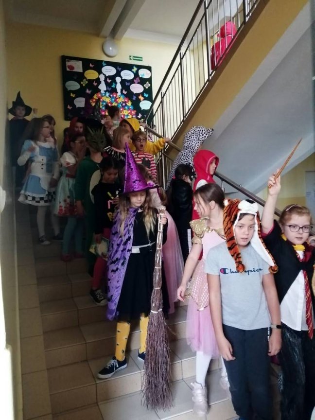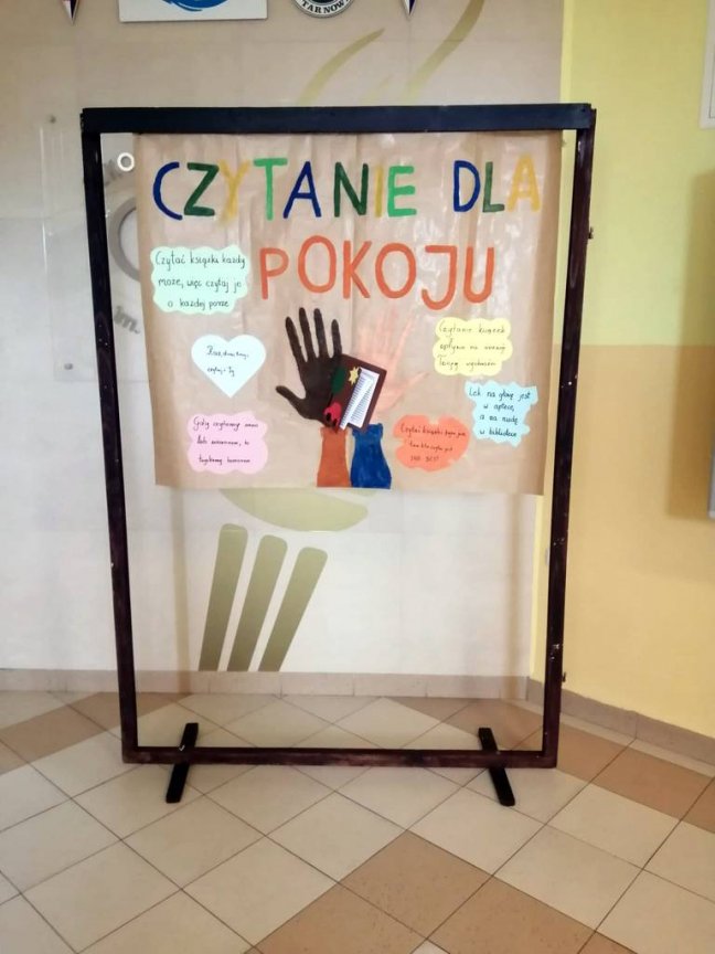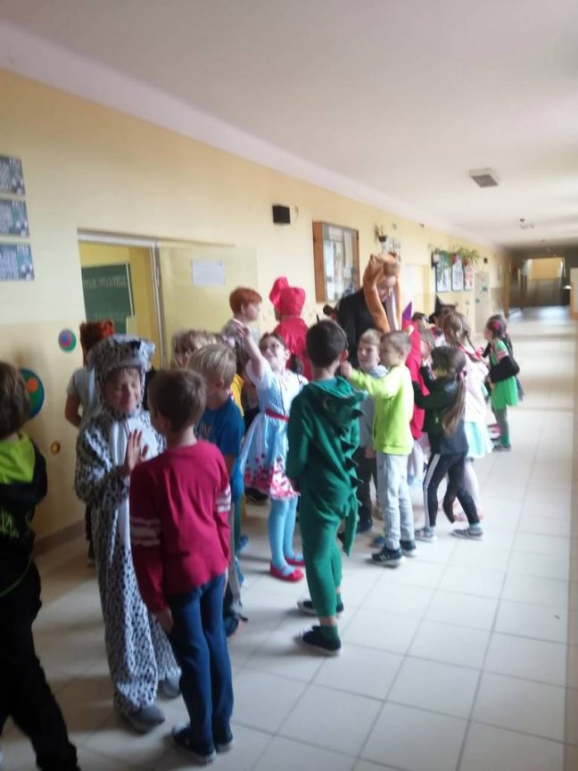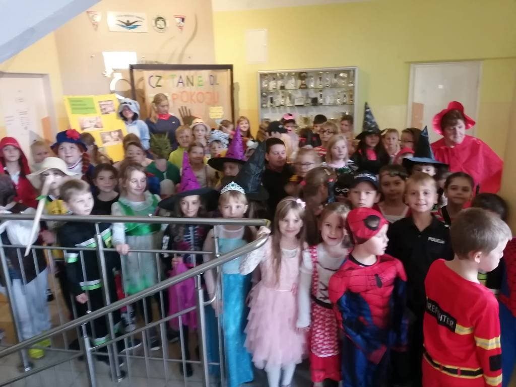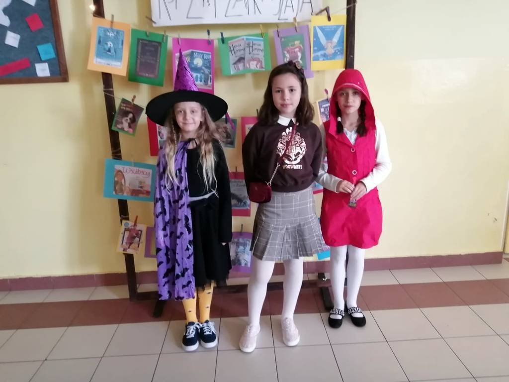 W tym roku również zaproponowaliśmy zabawę dla starszych i młodszych czytelników. Dla uczniów klas młodszych przeprowadziliśmy „Paradę Molików”- uczniowie przebrali się za ulubionych bohaterów książkowych. Parada pod przewodnictwem prowadzących Oliwii i Nadii, głośno zaznaczając swą obecność, przeszła korytarzami szkoły dając dzieciom dużo radości. Uczniowie klas starszych przygotowali plakaty reklamujące czytanie, odpowiadając na hasło tegorocznych obchodów „Czytanie dla pokoju”. Przygotowali również inspirujące foto - ścianki do zdjęć, na których tle chętnie pozowali z ulubionymi książkami.