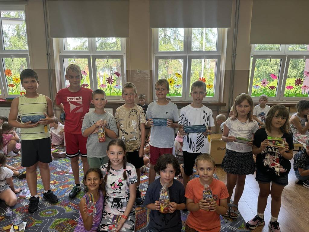 Po powrocie uczestnicy mogli dokończyć ulubioną zabawę Baloniadę. Natomiast po obiedzie nastąpiło podsumowanie półkolonii: rozdanie pamiątkowych zdjęć i nagród za udział w konkursach, każdy otrzymał upominek oraz mnóstwo słodkości. Wszystkim uczestnikom półkolonii życzymy udanych wakacji. Zapraszamy do NAS za rok. Napiszcie na naszym facebooku „ Jak Wam minął czas?”