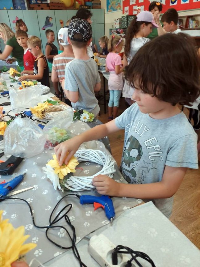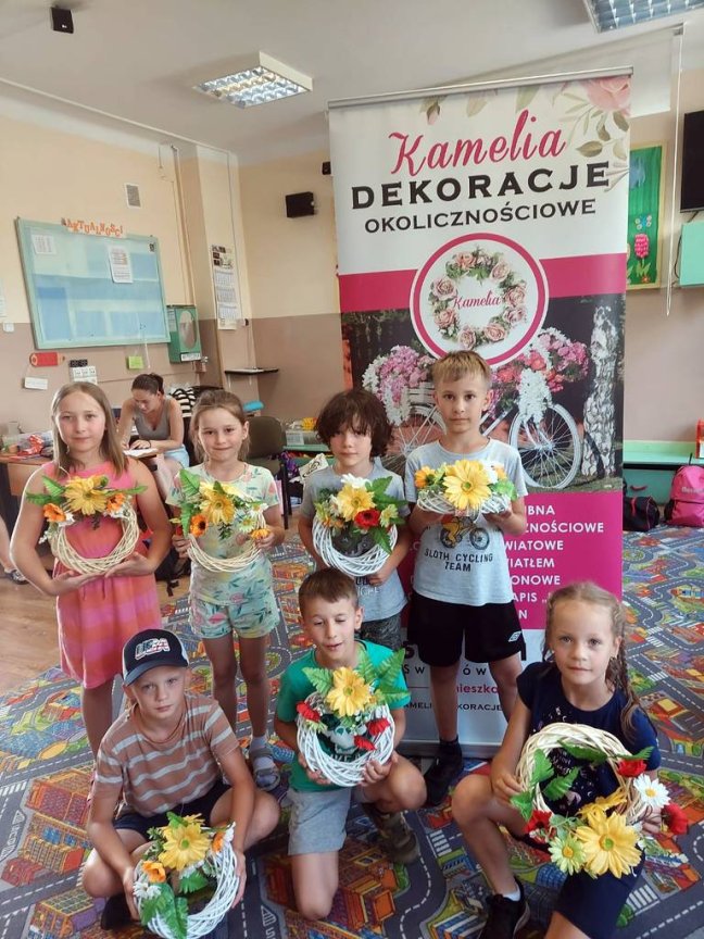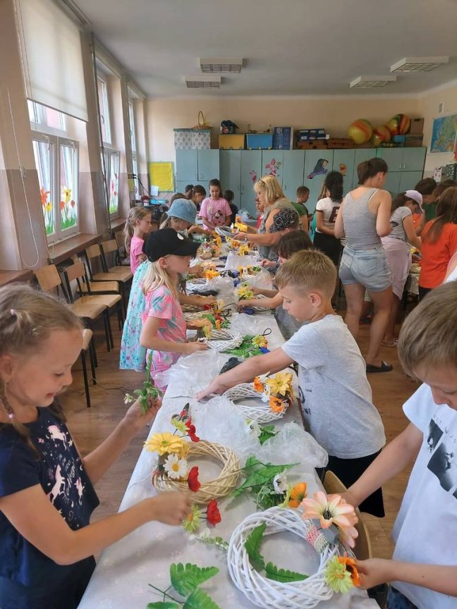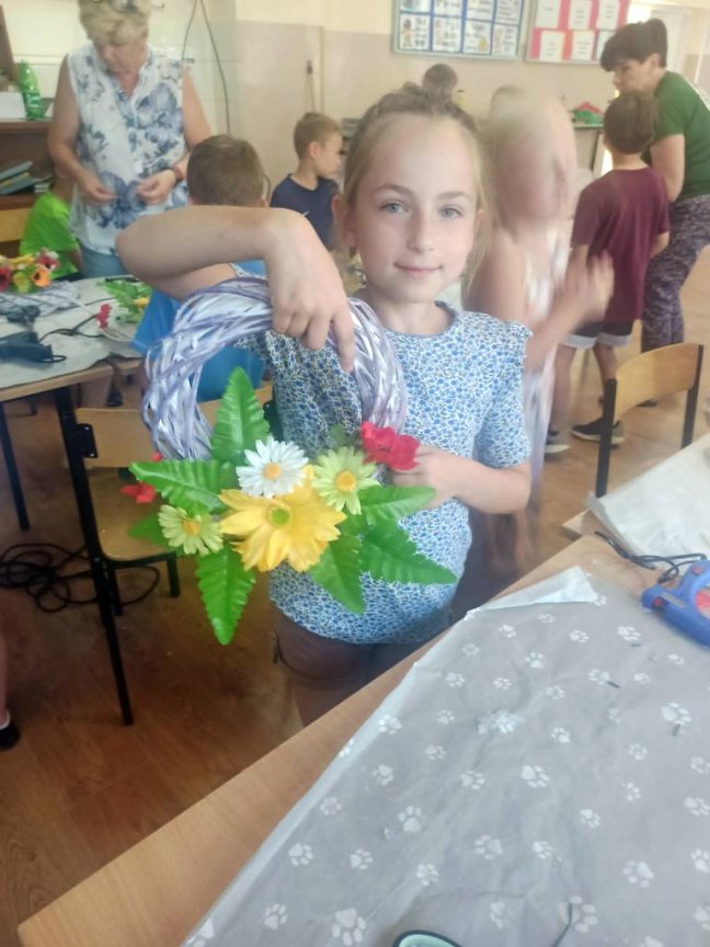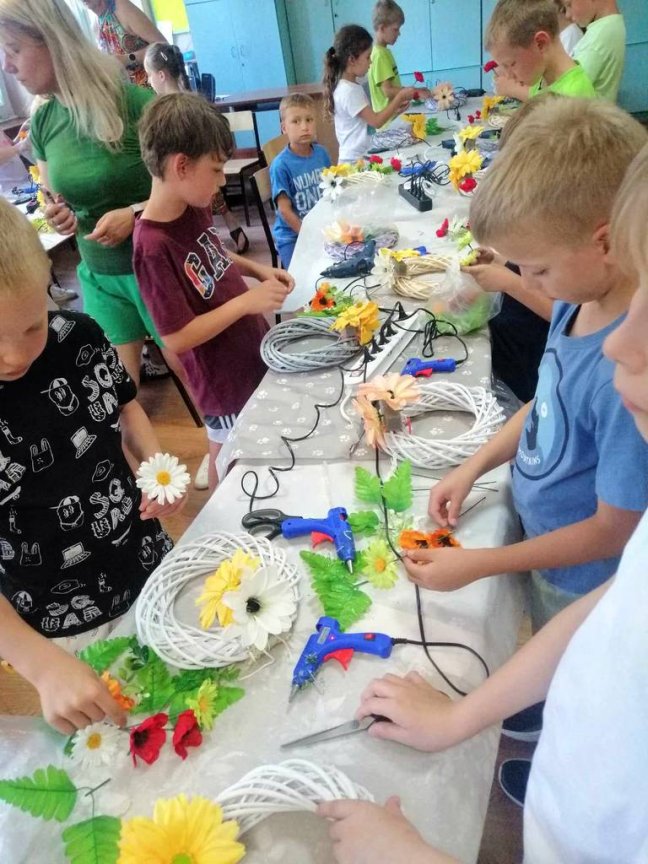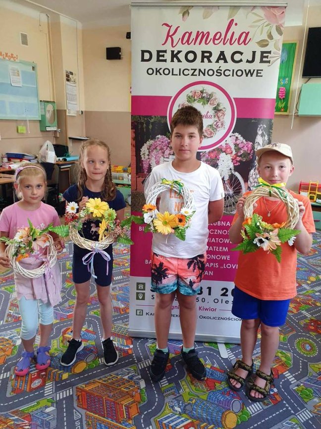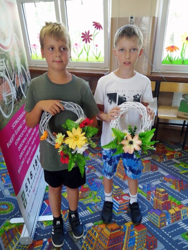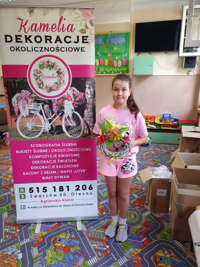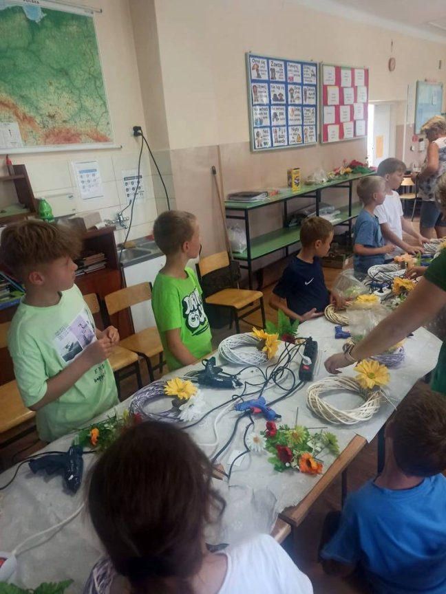 Po obiedzie dzięki właścicielce firmy Dekoracje Okolicznościowe „Kamelia”, która poprowadziła z nami niezwykle inspirujące zajęcia z florystyki wykonaliśmy piękną kompozycję ułożoną z kwiatów na wianku. Ten dzień zakończyliśmy bardzo kreatywnie i twórczo.