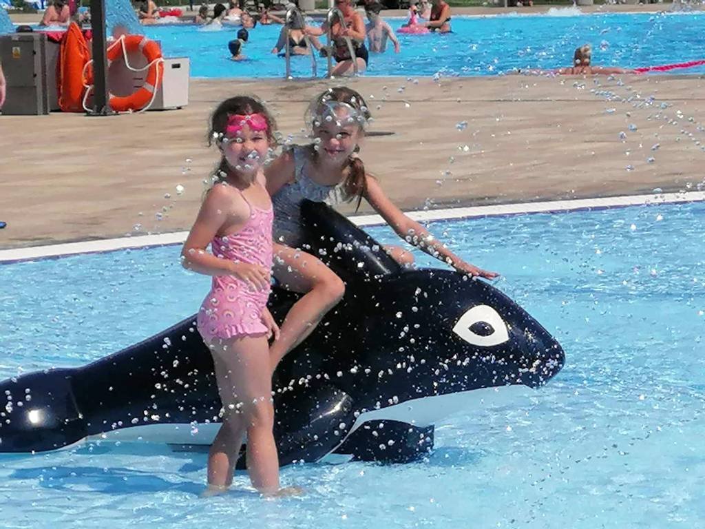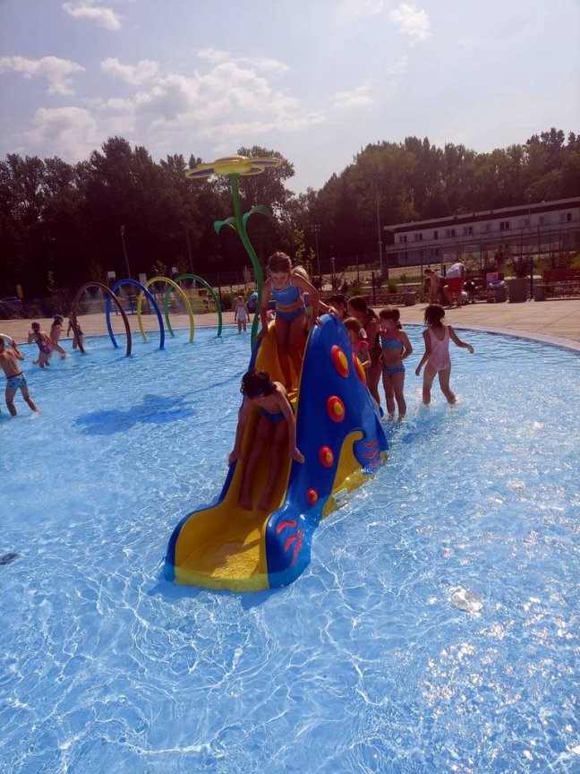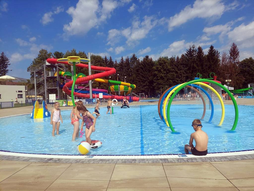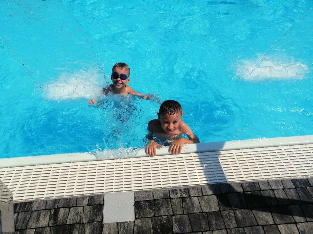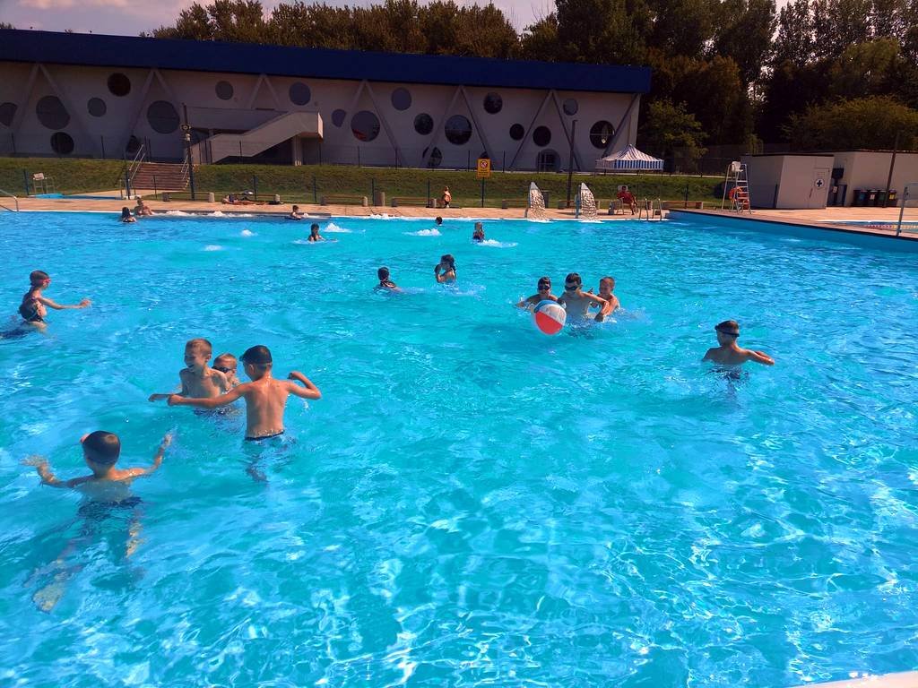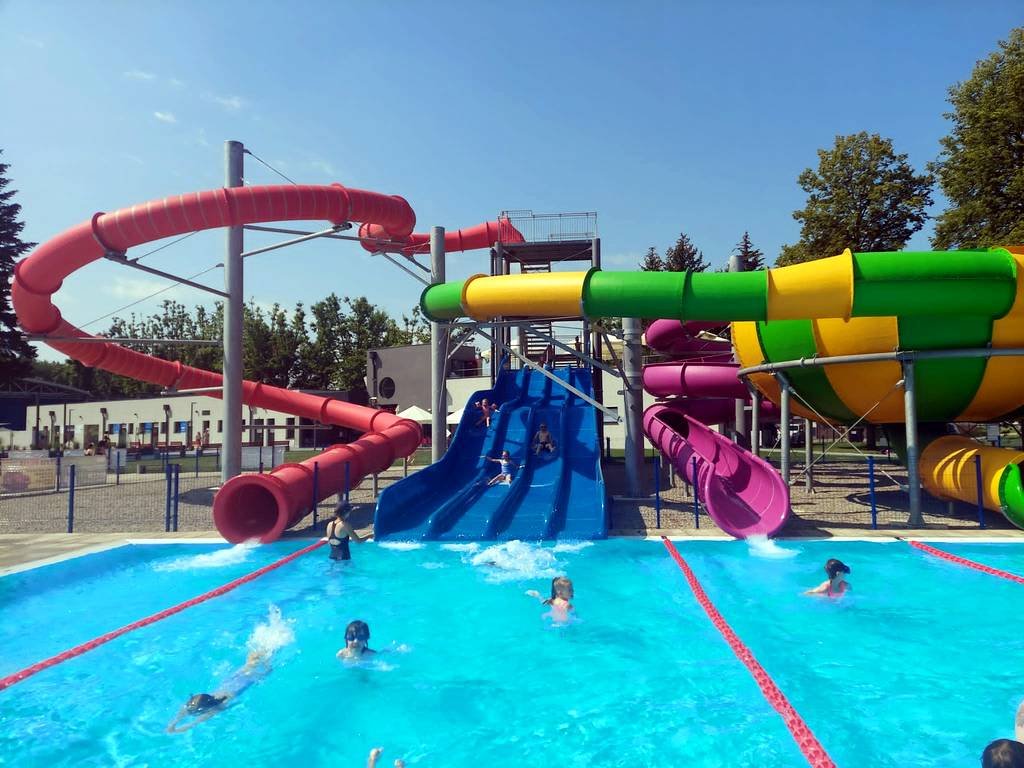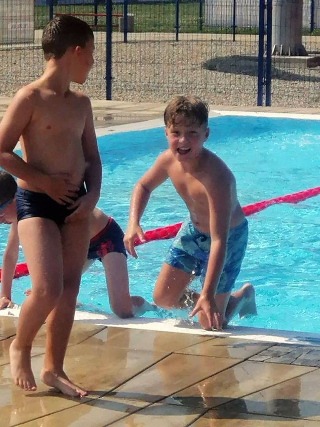 Dzisiaj dopołudnia byliśmy na basenie letnim i korzystaliśmy z atrakcji wodnych.