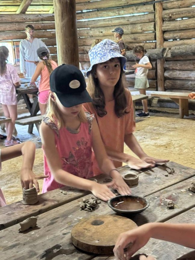 Koloniści wzięli udział w czterech warsztatach: Garncarstwo – mieli możliwość wykonać samodzielnie naczynia z gliny i ozdoby jubilerskie. Odlewnictwo – tworzyli unikatową ozdobę tworząc wzór na glinianych tabliczkach, a następnie zalewając stworzoną formę (przez lub przy asyście kowala) ciekłą cyną. Łucznictwo – poznali zarys historii łucznictwa, a następnie każdy uczestnik miał kilkukrotną możliwość strzelić z łuku pod okiem instruktora w bezpiecznych warunkach. Malowanie tarcz – po krótkim wprowadzeniu jakie symbole wojownicy umieszczali na tarczach i co one oznaczały, każdy wykonał swoją drewnianą tarczę i przyozdobił wzorem z którym się identyfikował.