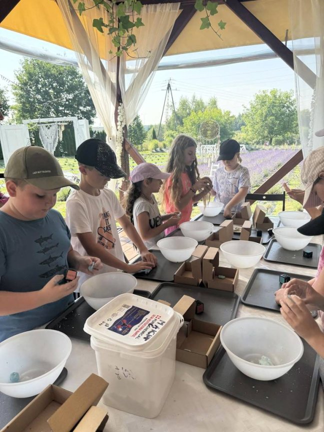 Po profesjonalnej rozgrzewce pod okiem instruktora, uczniowie korzystali z szeregu atrakcji. W ogromie atrakcji na dużej powierzchni, każdy znalazł coś dla dla siebie. Najważniejsze, że było dużo ruchu, śmiechu i dobrej zabawy. Natomiast grupy starsze udały się do Lawendowego Zagonka w Tarnowie, miejsca które przesiąknięte jest zapachem lawendy i niezwykle wyjątkowym klimatem. Podczas warsztatów nasi uczestnicy mieli okazję poznać lawendę wszystkimi zmysłami: dotykiem, smakiem, wzrokiem i węchem. Odbyły się również warsztaty pt. „ Naturalne mydełko lawendowe”.