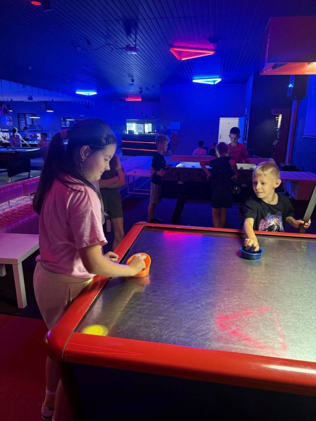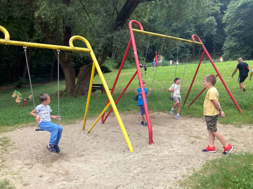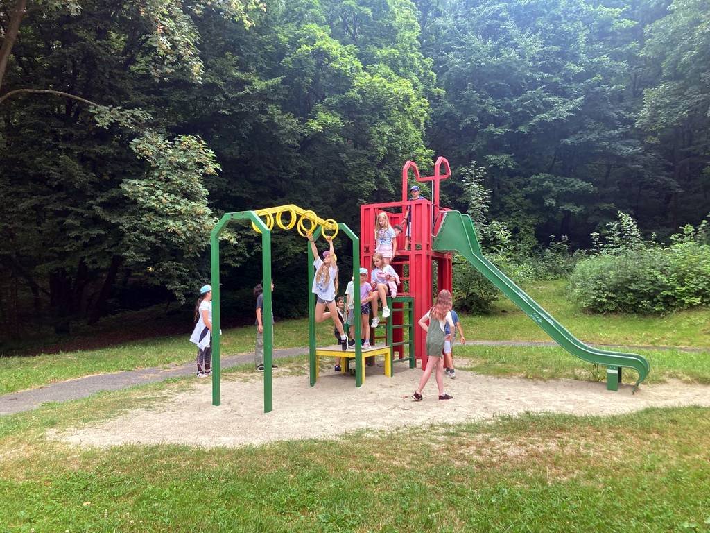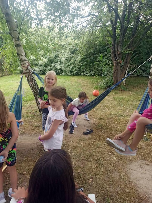 Po warsztatach był czas na zabawy ruchowe, degustację lawendowej lemoniady, a na zmęczonych czekały leżaki i hamaki. Uczniowie z grupy IV,V,VI w tym czasie korzystali z 6-cio torowej automatycznej kręgielni, gier symulacyjnych i stołów bilardowych. Potem udali się na Górę św. Marcina, gdzie podziwiali widoki naszego miasta. Po obiedzie grupy pracowały nad plakatem i nazwą swojej grupy. Dzień zakończył się wspólnymi zabawami na świeżym powietrzu.