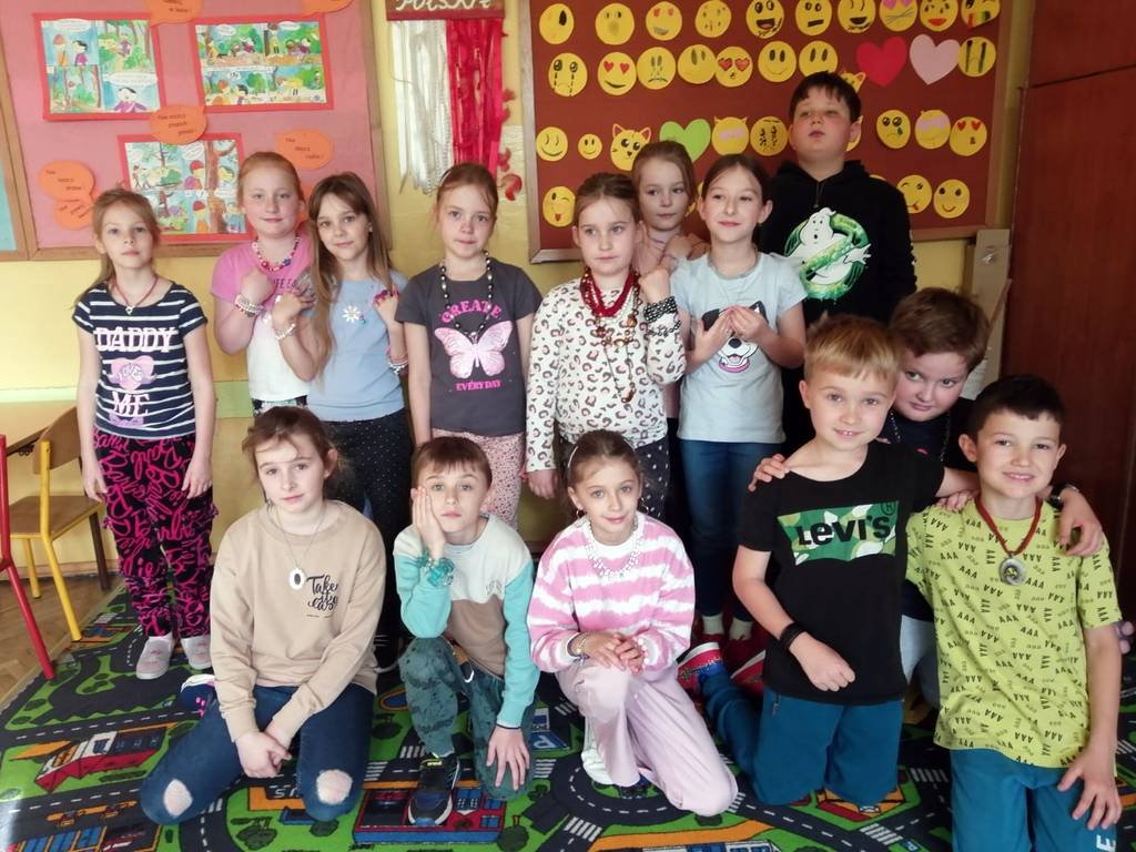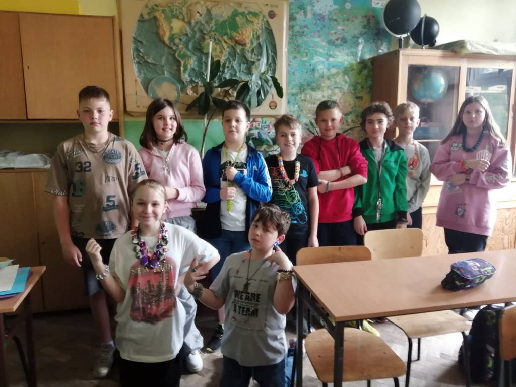 Uczniowie SP20 świetnie prezentowali się w biżuterii pożyczonej od swoich mam i babć, charakterystycznej dla lat 80 i 90. Dziękujemy i zapraszamy do zabawy w dniu piątym.
