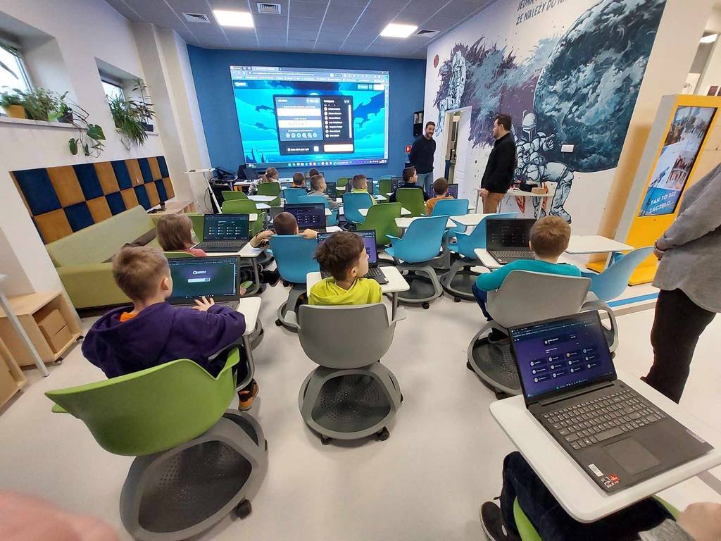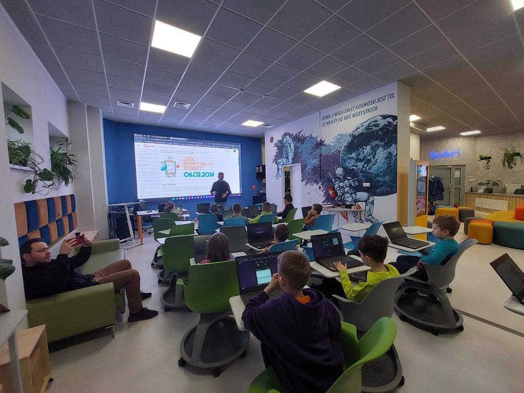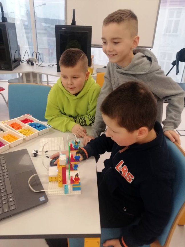 Po krótkiej pogadance nt. sieci internetowej i zasad poruszania się w niej, uczniowie mogli praktycznie przetestować swoje wiadomości rozwiązując quiz. Następnie mieli okazję zbudować swoje pierwsze roboty i zaprogramować je. Na koniec dzięki wirtualnej bieżni pokonywali płotki i bili swoje rekordy prędkości. Zajęcia podobały się wszystkim uczestnikom.