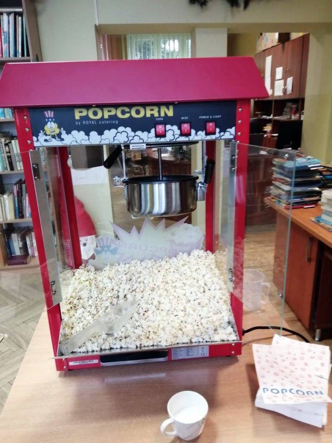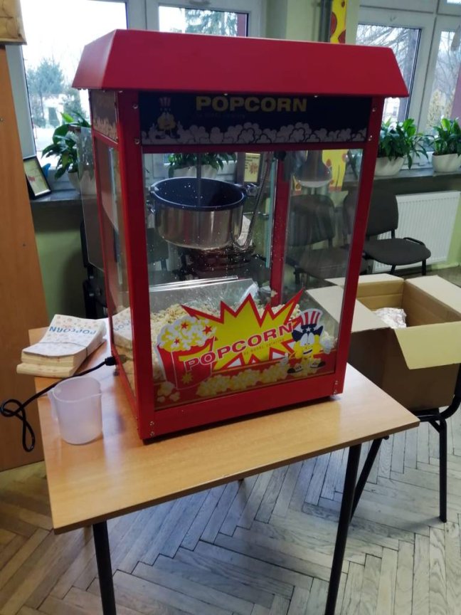 Dzięki sponsorom została zakupiona profesjonalna maszyna ulubionego przysmaku dzieci i dorosłych. Przygotowany popcorn cieszył się ogromnym zainteresowaniem wśród uczniów.