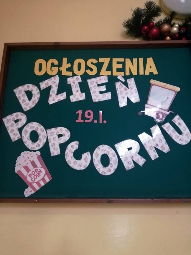 Dzień Popcornu według kalendarza świąt nietypowych obchodzony jest 19 stycznia. Samorząd Uczniowski postanowił aby w naszej szkole, był to dzień pachnący popcornem.