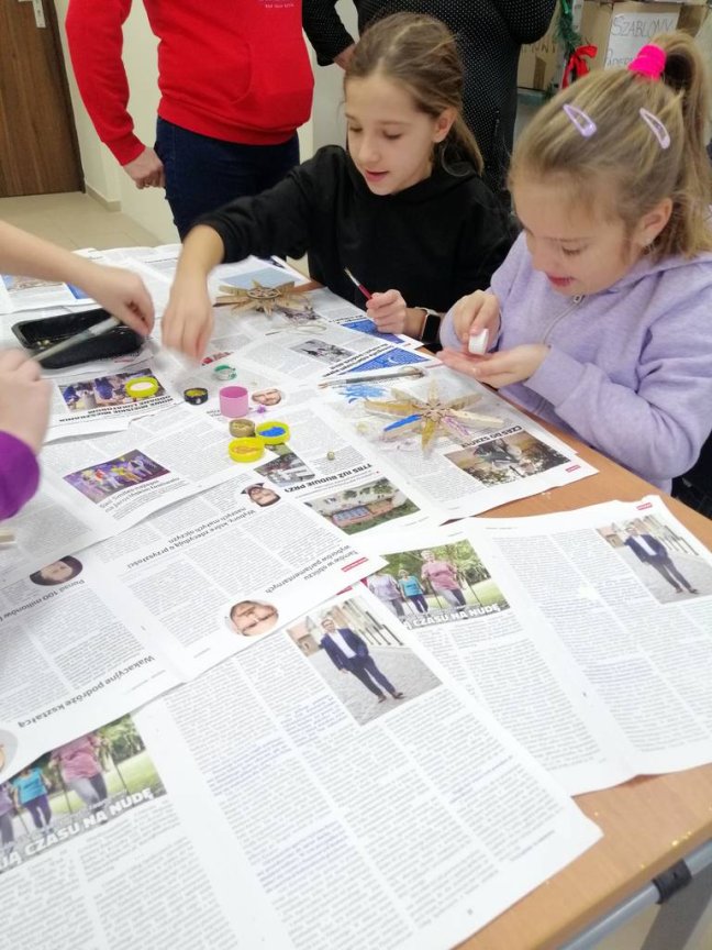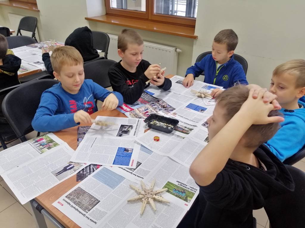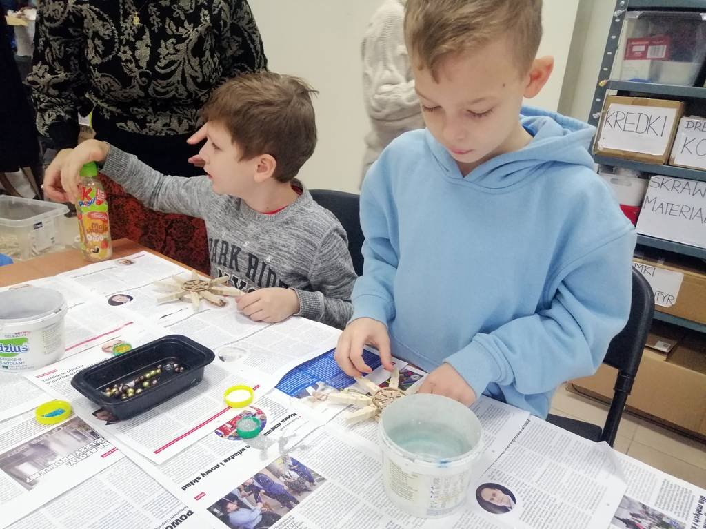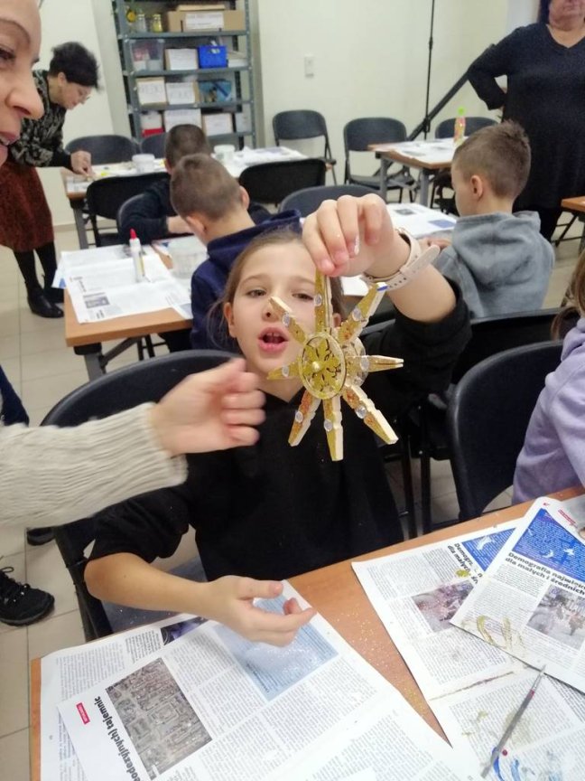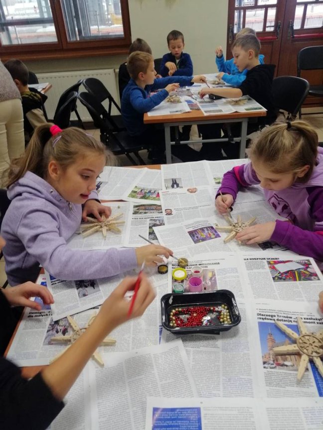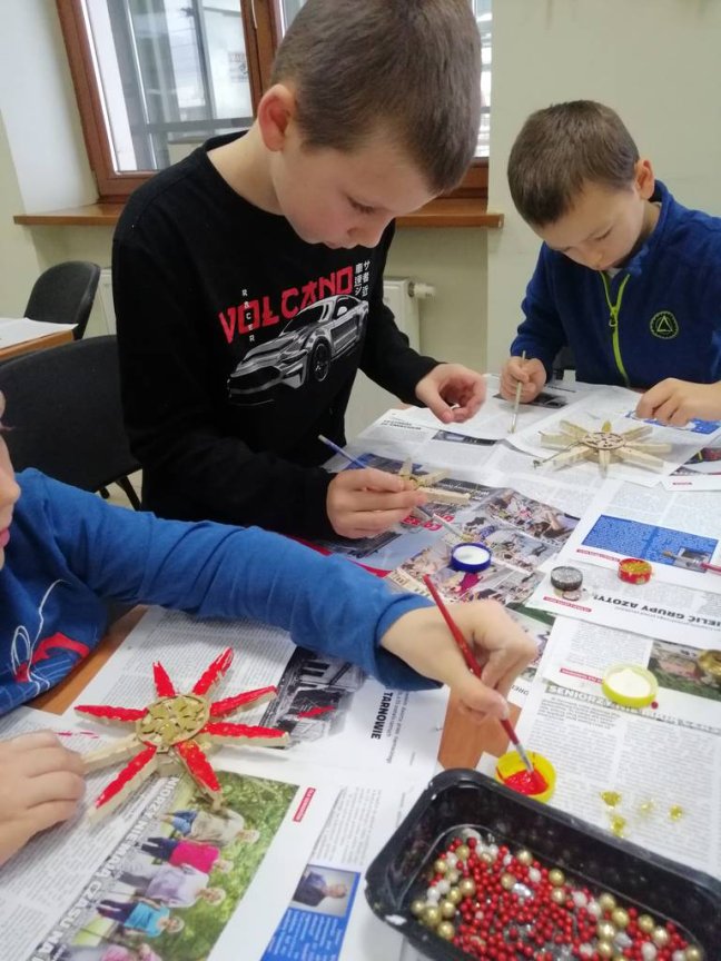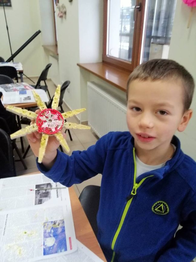 Podczas zajęć usłyszeli o obrzędach i zwyczajach bożonarodzeniowych, ale mieli również okazję podzielić się swoimi spostrzeżeniami na temat nadchodzących Świąt. Wykonali piękne gwiazdy, które będą ozdobą domowej choinki.