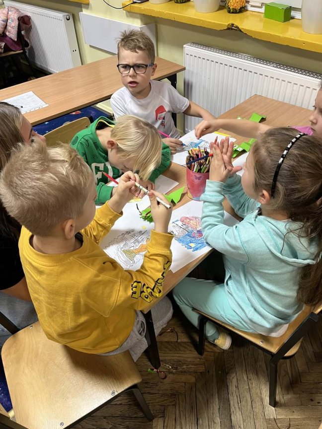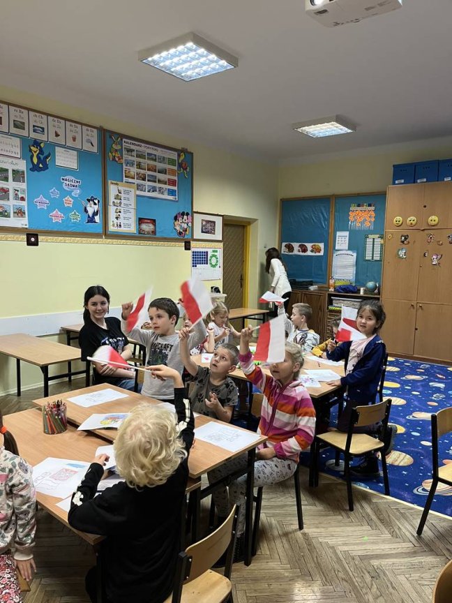 Przez zabawę dzieci poznawały legendy polskie, wykonały smoka wawelskiego, pięknie śpiewały pieśni patriotyczne i kolorowały symbole narodowe. Znalazł się również czas na zabawy ruchowe. Patriotyczne spotkanie zakończyło się wspólnymi zdjęciami z flagami.