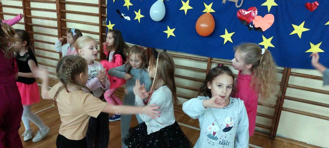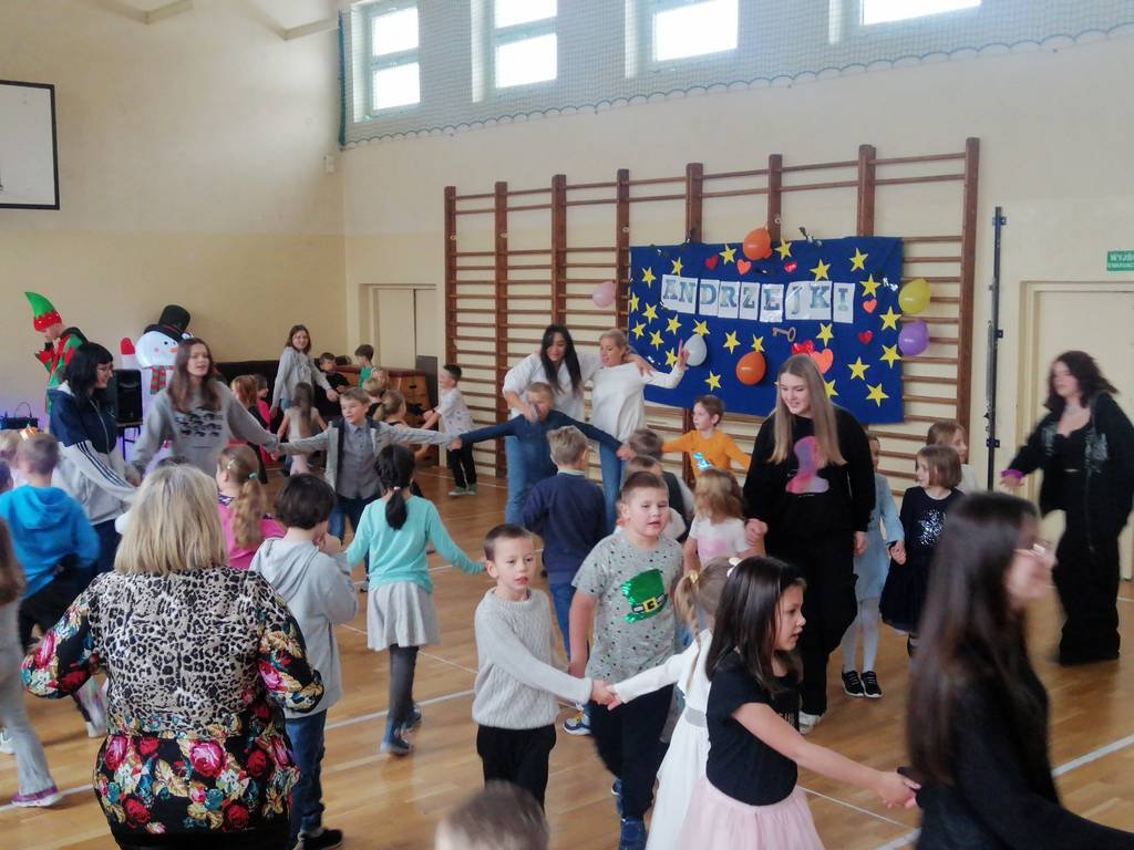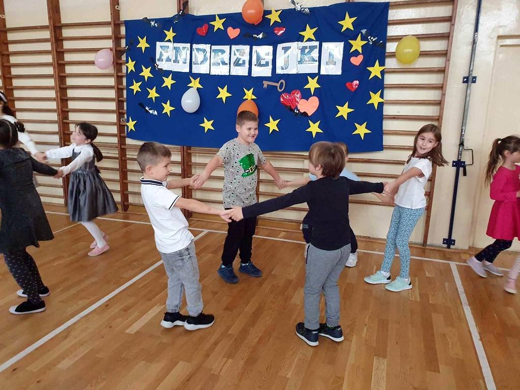 Na sali gimnastycznej, przy dźwiękach znanych im przebojów czas mijał szybko. W klasach przeprowadzono wróżby andrzejkowe. W przerwach między tańcami dzieci nabierały siły dzięki przygotowanemu dla nich przez rodziców poczęstunkowi.